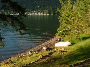 The sun came out this evening, so I grabbed my sweatshirt and camera and went down the path to take a picture of the new boat.