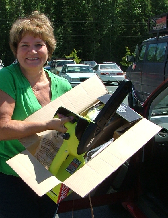 And before we hunted bargains, we had to go to Home Depot to return a chain saw.