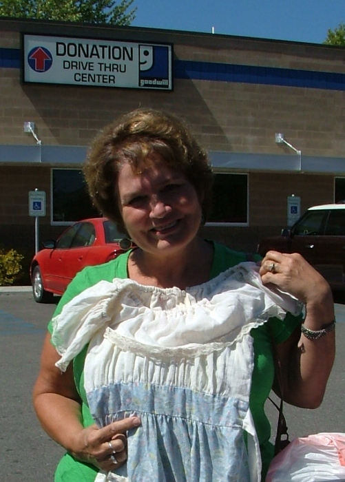 Here she is donating a dress from the 1980’s.