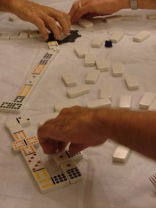 Jeff remains amazed that a game for which the results are 99% dependent upon luck can matter so much to others.  (&()&^%#@!) After an early victory, Glen was sure his record of “never having lost” would remain intact, despite Angela’s skills.  “More Pie” ended up dominating dominoes with three straight wins.  Shockingly, Glen (aka Banjo Man) finished last.