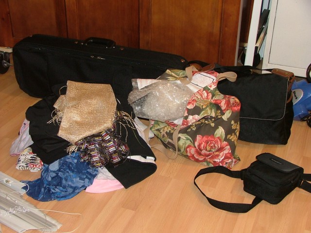 This a small corner of my office. Obviously I haven’t accomplished much in the past 48 hours. See that fiddle case? Inside is a violin waiting to be tuned. Next to it is a black bag filled with music. The pile of clothes is topped by my Gold Diva Stillhouse Singer Birthday scarf. I’m going to keep it near my music stand, as soon as I find space in this mess to set up the stand.
