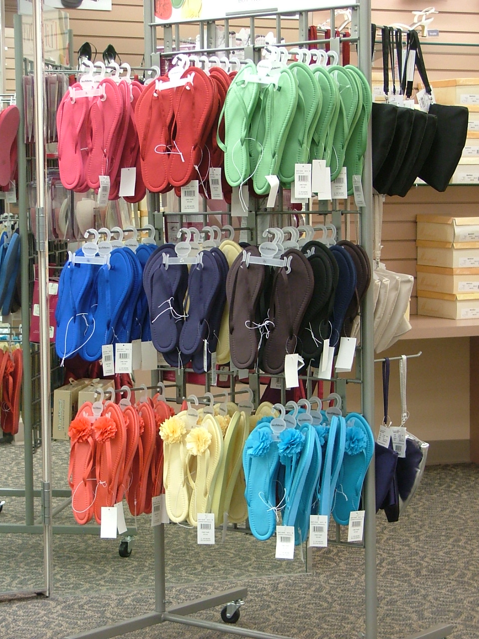 I can show you a picture of the flip-flop rack at the bridal salon. Why are there flip-flops at a bridal salon? For pedicures? Dancing? Beach weddings?