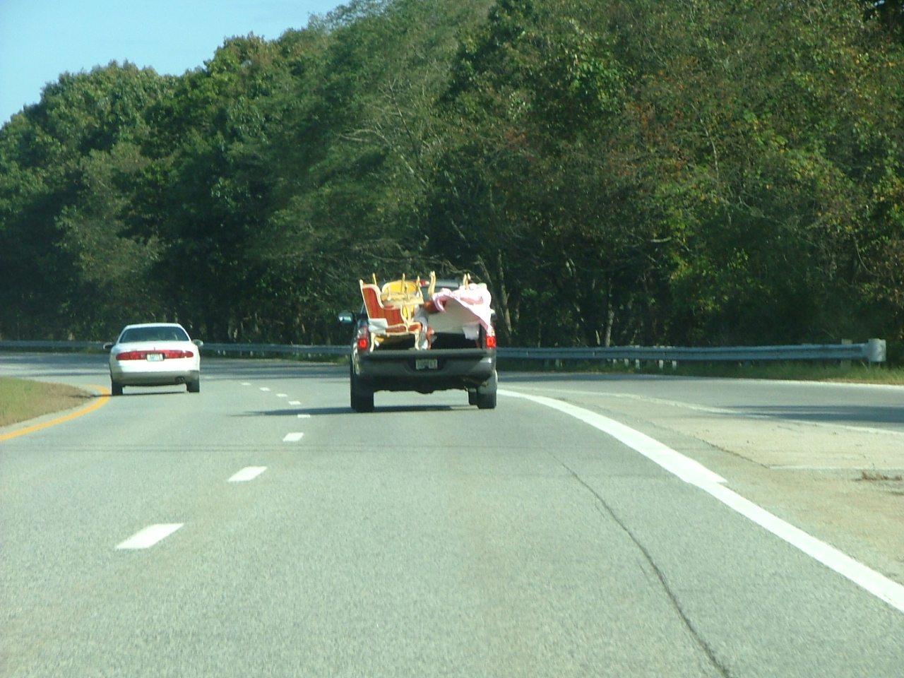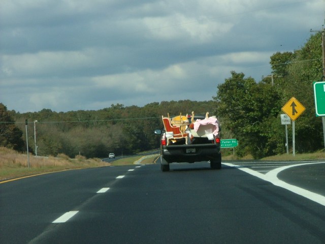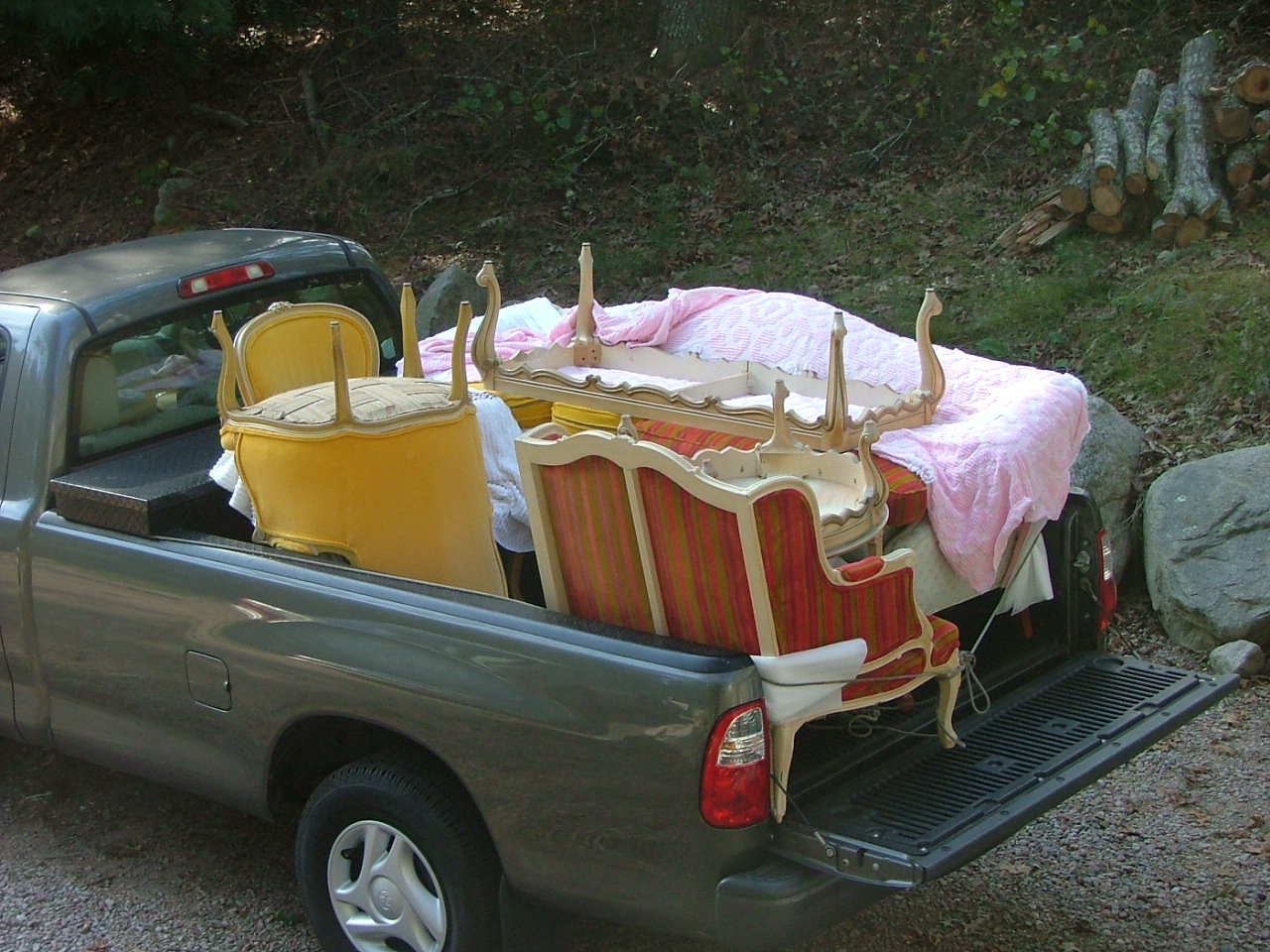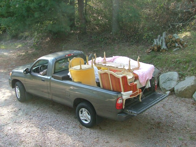 My mother said she will miss the yellow chairs.  In fact, several people have said, “Not the yellow chairs!” in a rather stricken way.  They were very comfortable.  And very, uh, bright.  Marigold bright, especially in the daylight.  I’ll bet the other people on the road wished they were getting this delivery instead of the consignment store.