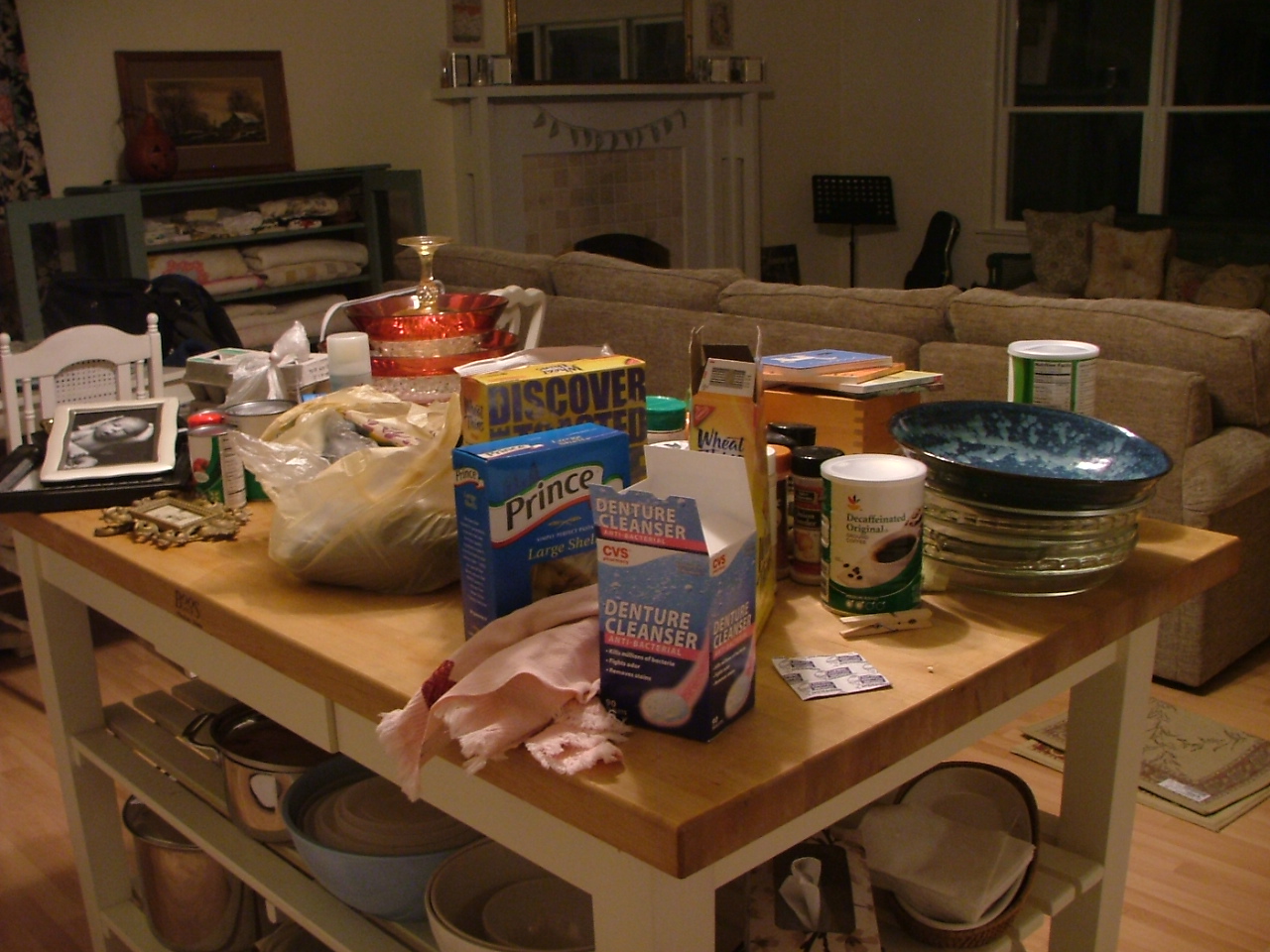 p.s. pay no attention to the giant box of denture cleaner–it’s very sad that Banjo Man and I have lost all of our teeth.
