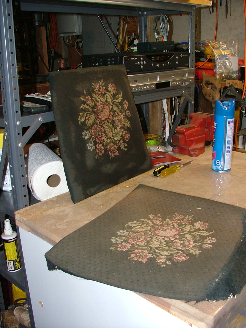 I took apart two chair seats Wednesday. They were my grandmother’s cherry dining room chairs; I had recovered them about 10 years ago by stapling fabric over what was already there.