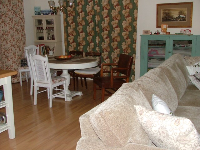 P.S. Pay no attention to the old green drapes. They’re temporary. So is the quilt hanging over the patio doors. They’ll do until I figure something else out!