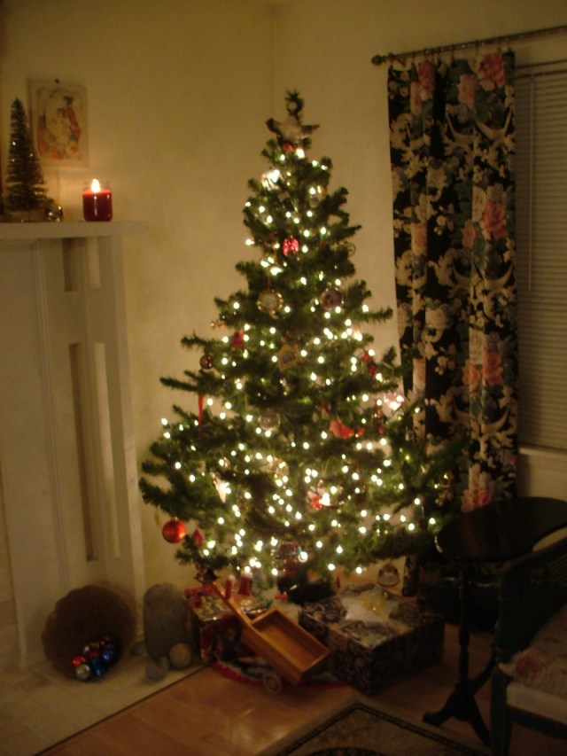 Not the best photograph in the world, but you get the idea. This year we used my mother’s old artificial tree. Yeah, we wimped out. None of the kids are coming home, daughter Nancy has to work, and no relatives are flying in over the holidays so… we’re forced to keep it simple.