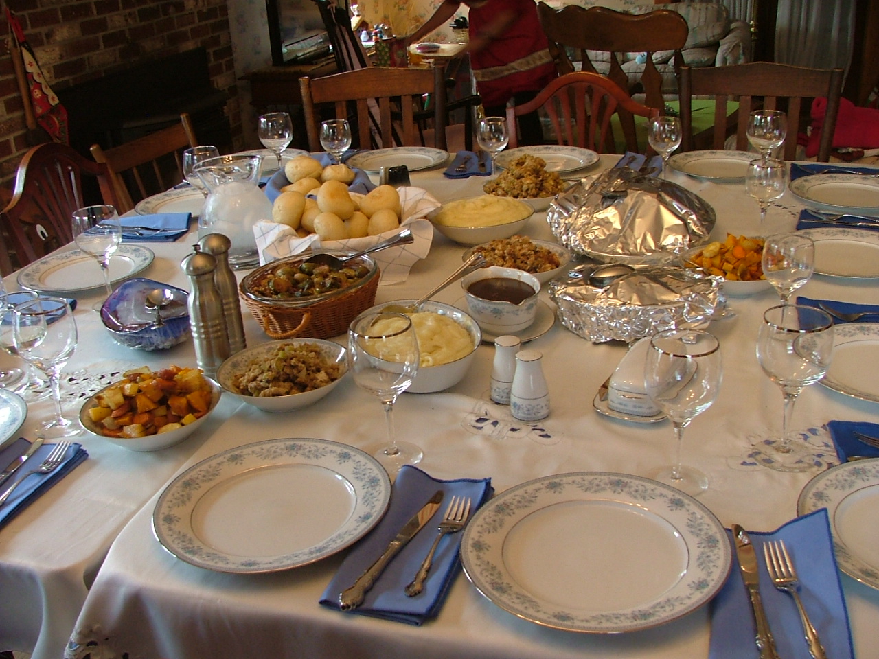 What a great afternoon we had! It was such a treat to be surrounded with children, from a sweet two-year old to happy teenagers. I even met a young man who has a room full of ribbons from winning tractor-pull competitions! “Someone” hid Russ’s favorite Italian cookies (baked specially for him by his sister-in-law), the brined turkey was delicious and there was even a “kids table” (bring back memories, anyone?????). Chocolate cream pie turned out to be the most popular dessert, but Chad’s apple pie was a close second.