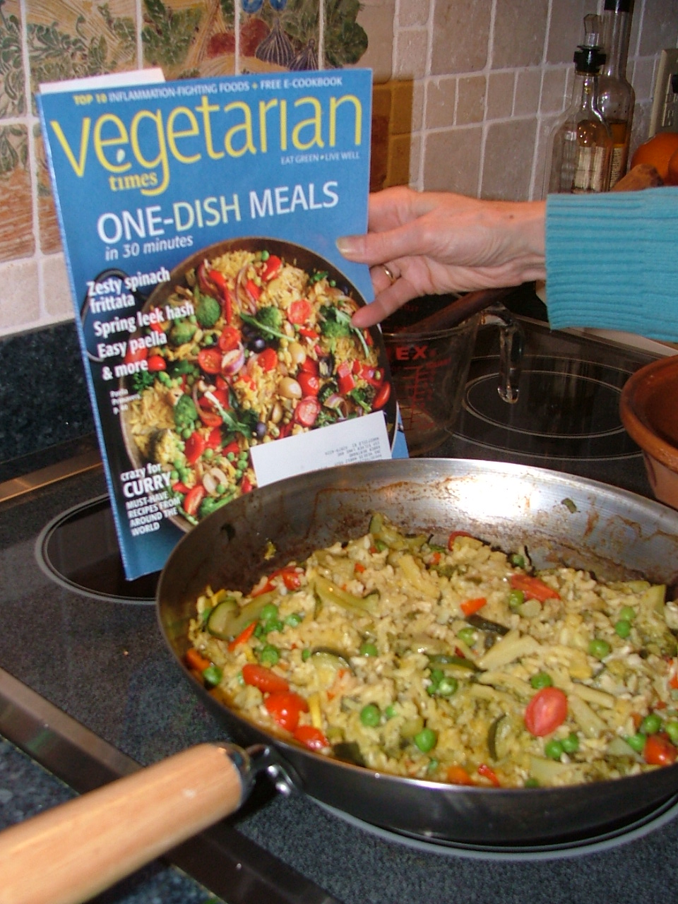 I wish I could share the recipe for this vegetable paella.  It was really, really good. I’m going to buy the magazine, because so many of the recipes looked so darn delicious.  And then I will post the recipe.  I’m going to make it this summer, with a skillet full of fresh vegetables from fellow band members’ gardens (because they understand that I don’t like dirt and can’t grow anything).