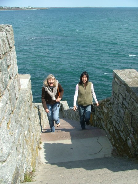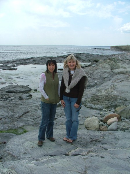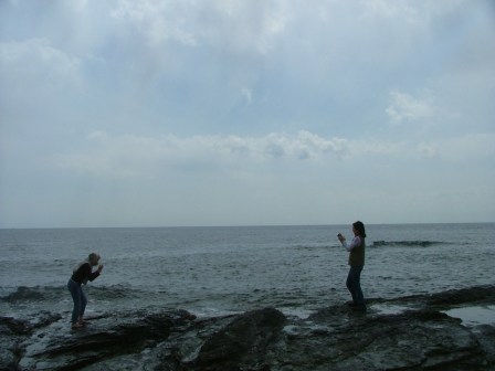 Here they are on the rocks of Brenton Point, right before Barbara (who had never seen the Atlantic Ocean before) scared the pants off me by stepping out onto the wet rocks to dip her toes into the ocean. I loved her enthusiasm but I was worried about her, um, drowning.