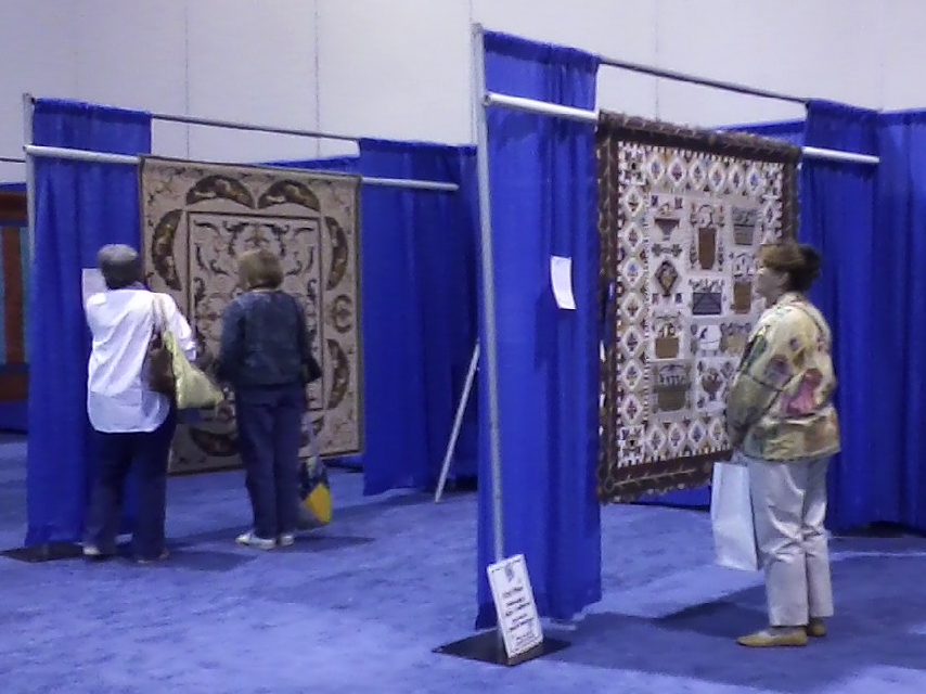 The quilt displays are always intriguing and arty and involved and complicated and amazing. There are also tons of vendors–fabric, threads, longarm machines, beads, buttons, lighting, gadgets, rulers, irons, etc.–but this year there weren’t as many. Either fewer people are sewing/quilting, or there is much less money to splurge on fabric and supplies.