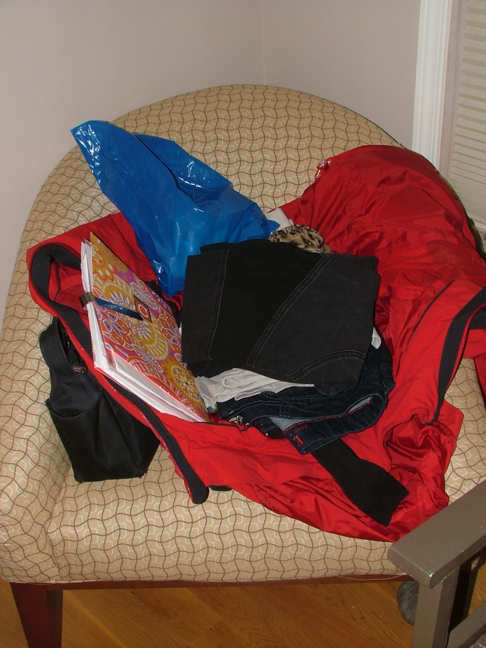 There are a lot of beans and vegetables in those grocery bags. Plus a bag of chocolate chips.