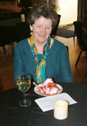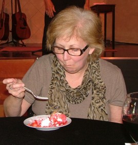 Then we ate dessert while waiting for Doug to come on stage. Here is Mandolin Ann, looking ladylike as always.