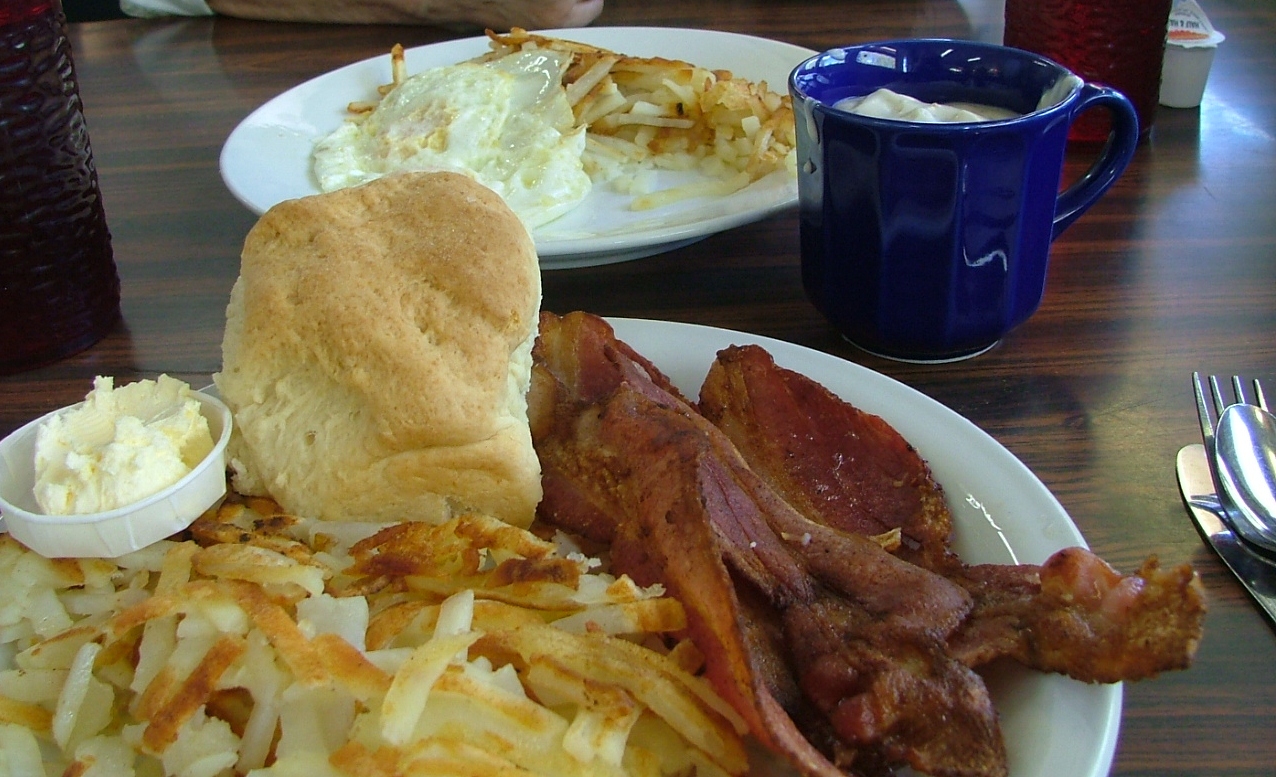And we were hungry. Very hungry. I wanted bacon. I wanted bacon more than anything, having eaten beans and vegetables and homemade protein bars for many, many months with Banjo Man.