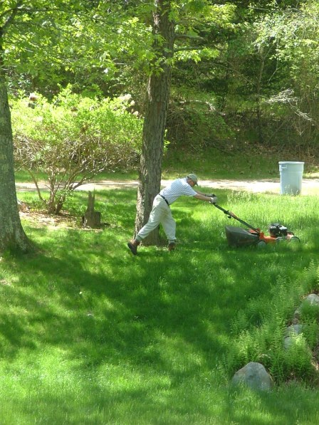 Banjo Man/Father of the Bride/Glen probably had to reach back 50 plus years to his farming days on North 14 to cut grass that long.