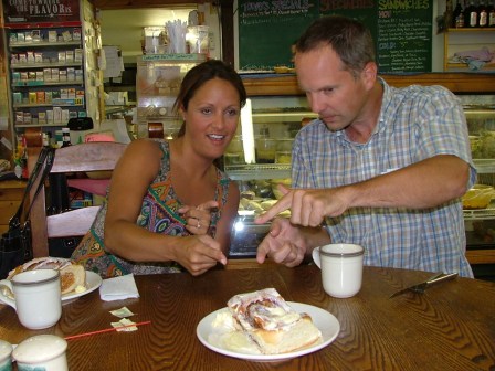 Here’s DMP, taking a break from silk flowers and real flowers and vintage flowers and tulle. It’s not all work here, folks. After the sunset, Banjo Man joined us for a short music jam in the basement.