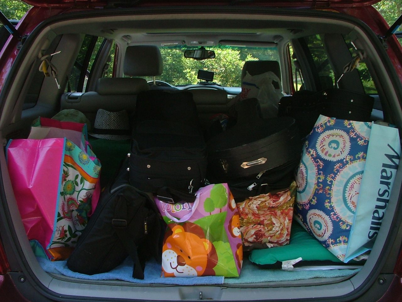 This was right before we left, when Banjo Man’s visions of having a bed in the back seat vanished. A banjo, mandolin, fiddle, lap steel guitar, amplifier, computers and clothing took up precious napping space.