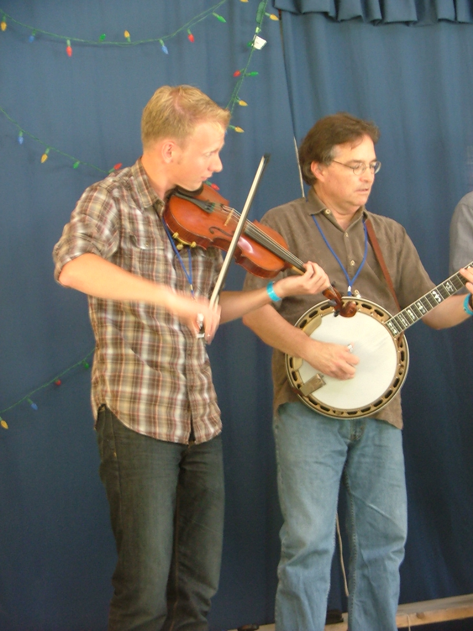 DMP was having the exact same experience in her Intermediate Mandolin class. The two of us compared notes at 6:30, assured each other that we could do this, then headed off to the initial camp meeting and the “Beginners Jam”, where DMP got behind the mike and led everyone in “New River Train” and I actually played “Midnight On The Water” (because I was one of three people who knew it, thank you Carrie Rodriguez).