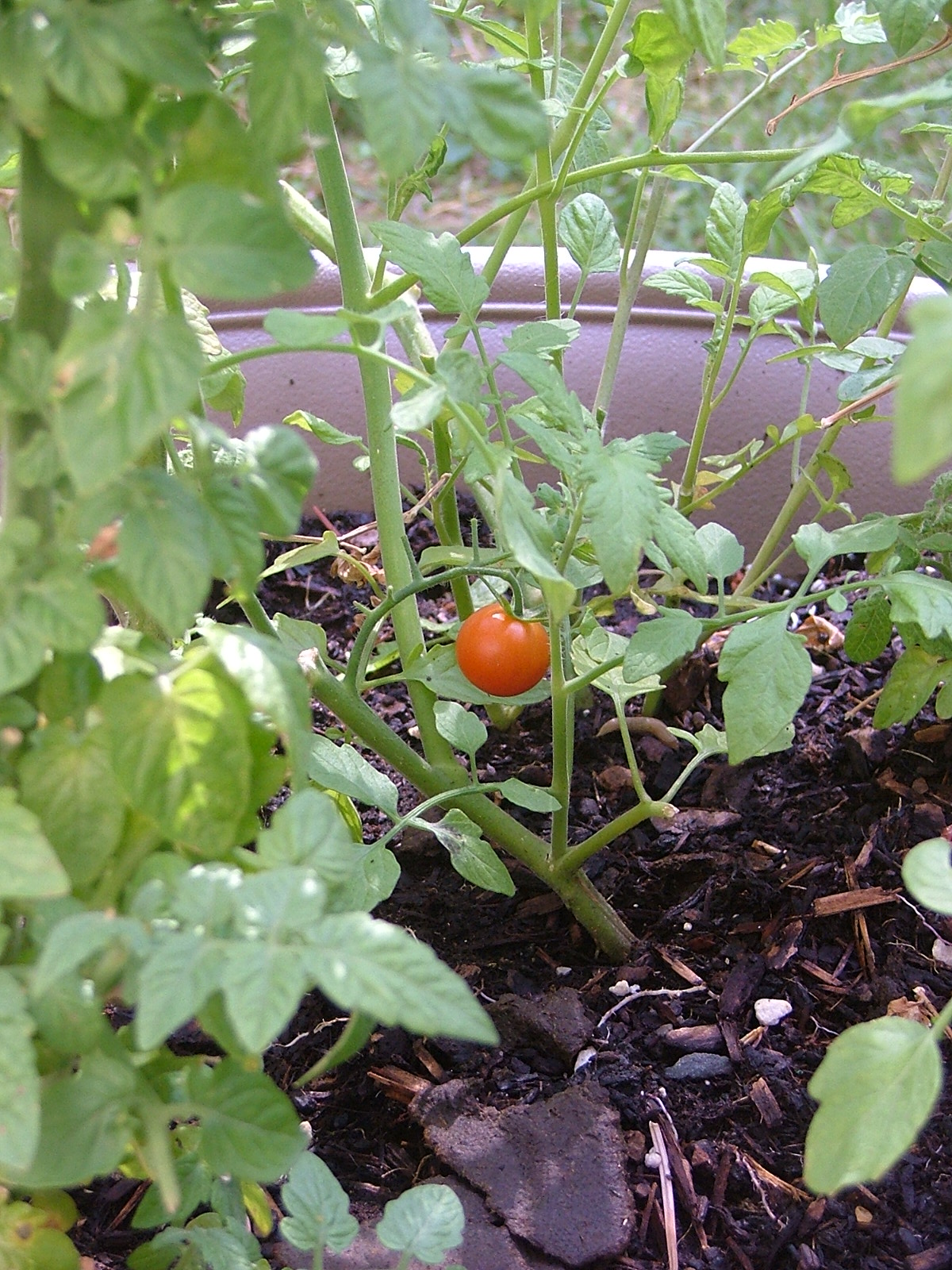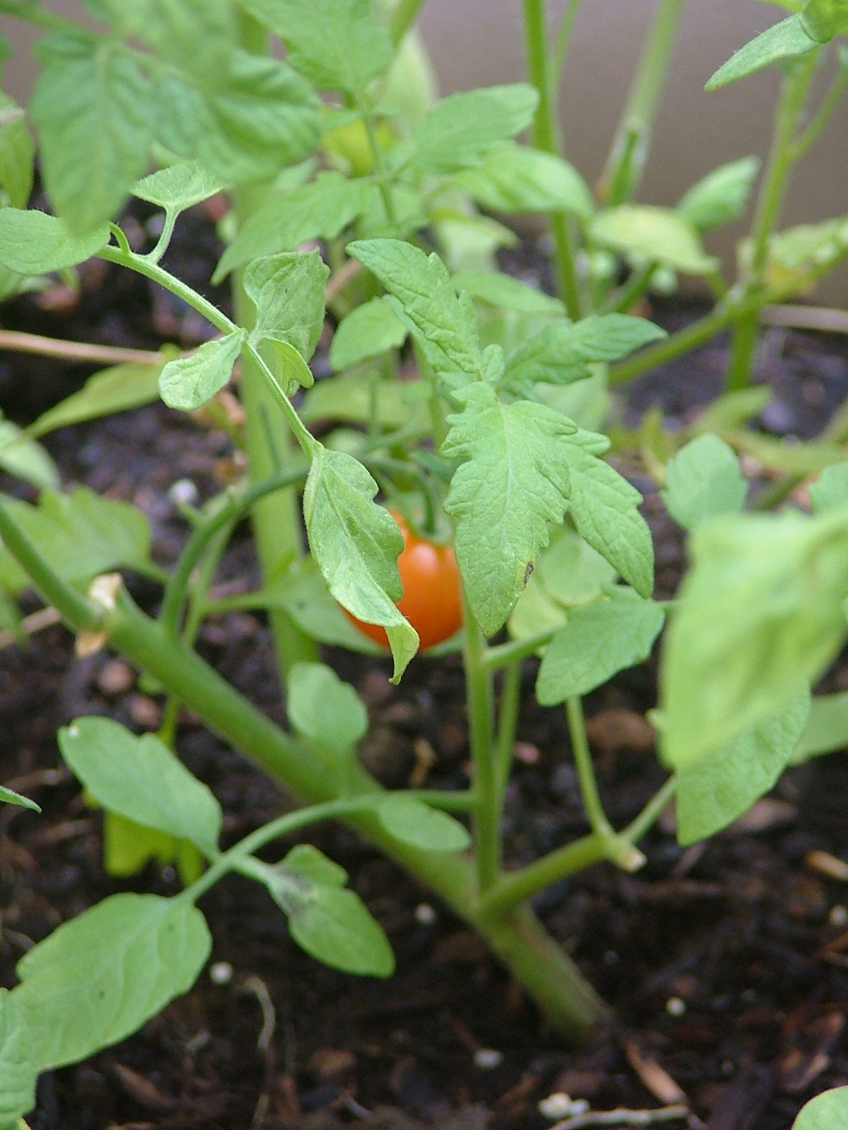 This is a very rare tomato. A survivor, after several battles with the deer.