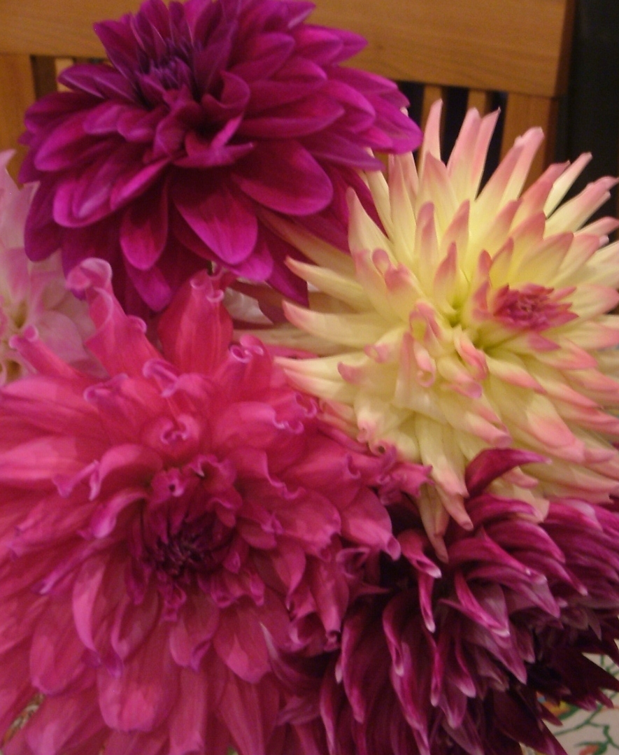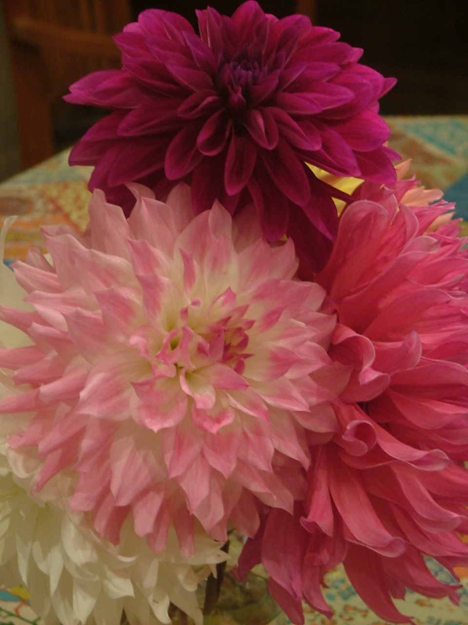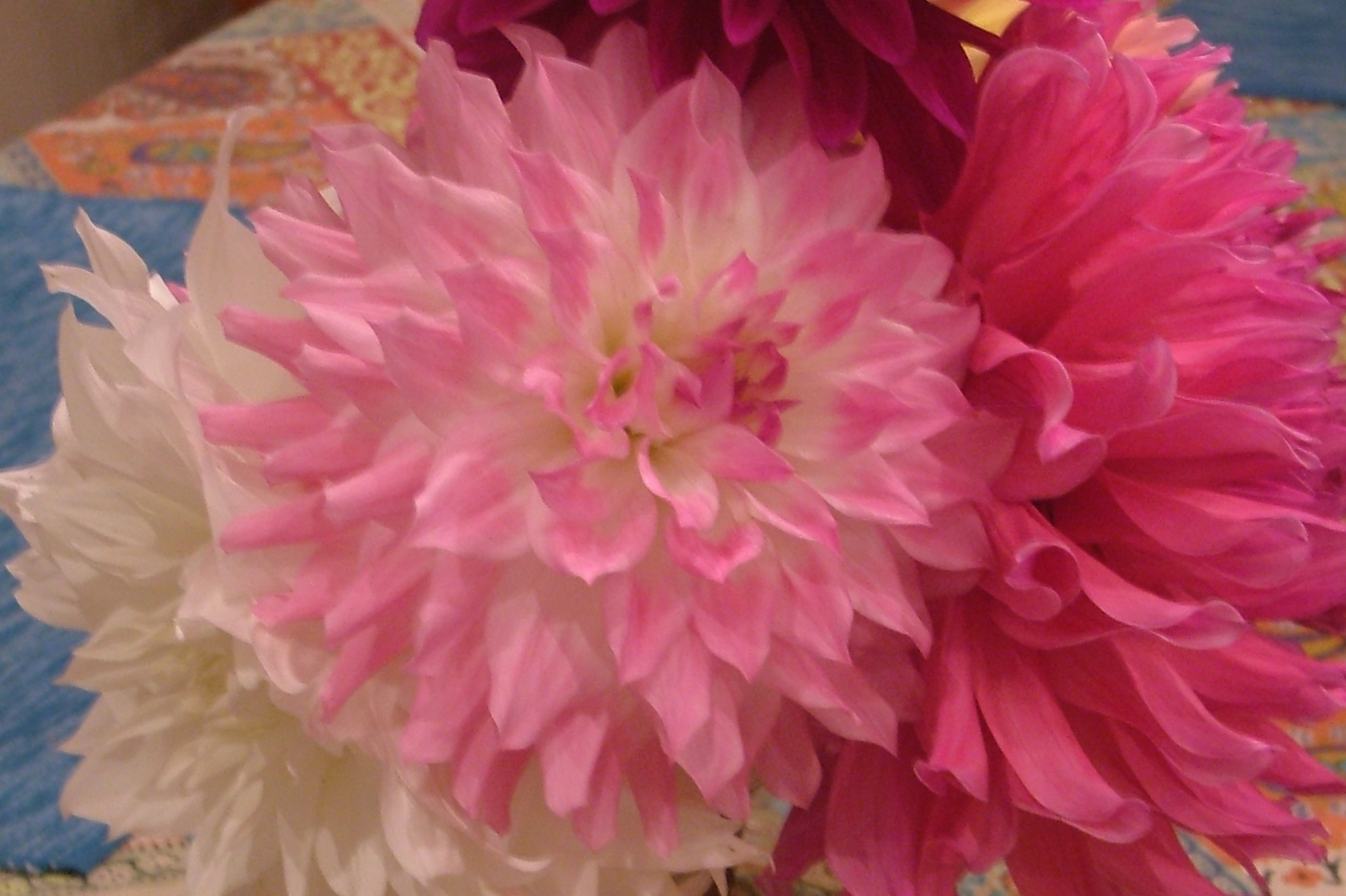 These gorgeous flowers make me want to go out and buy fabric in all shades of pink and white and rose and then make a quilt with stitching in the shapes of flower petals just like these.