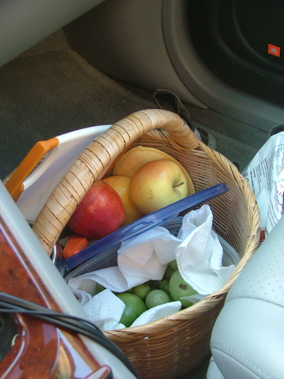 Your tomatoes look very happy in their basket. You “got of Dodge” just in time. There’s snow on Greens’ Ridge this morning.