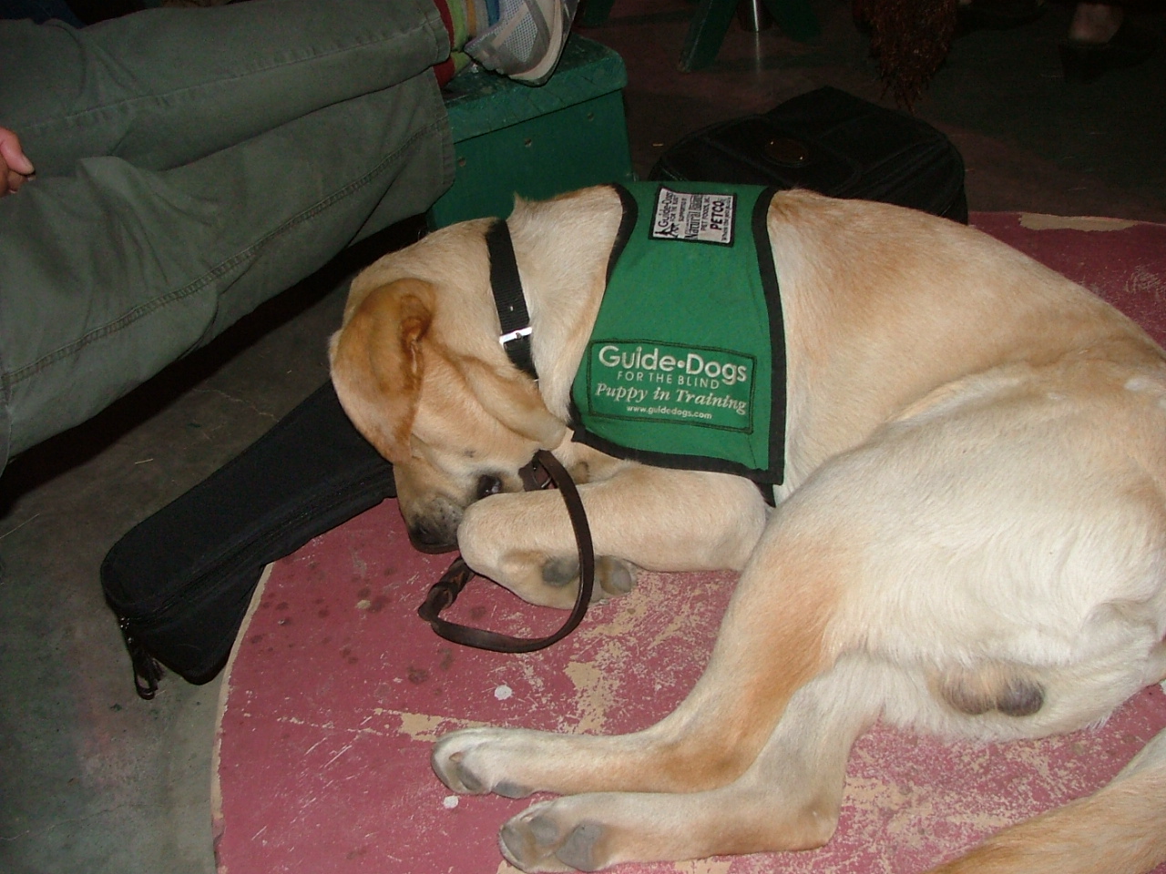 btw, at Bluegrass Camp there was a woman who was training a service dog, a yellow Lab with a laid back attitude towards music. Clearly he’s heard banjos before.