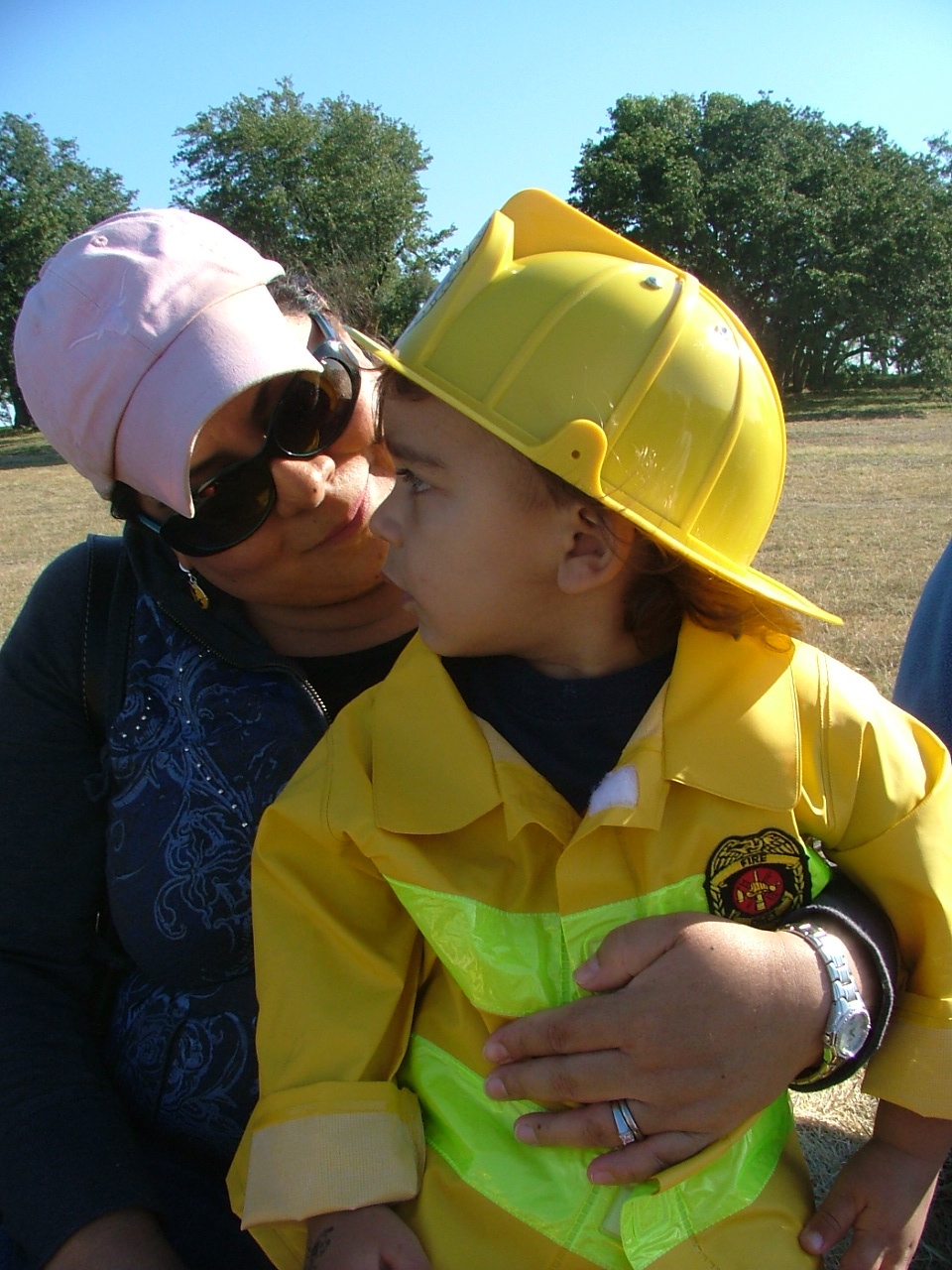 Today was a Halloween festival in a local park. If you are a two year old boy who likes trucks you will want to go on the hayride four times, even if you have to stand in line. And then you will cry, but your grandmother will take you out to lunch and give you her french fries.