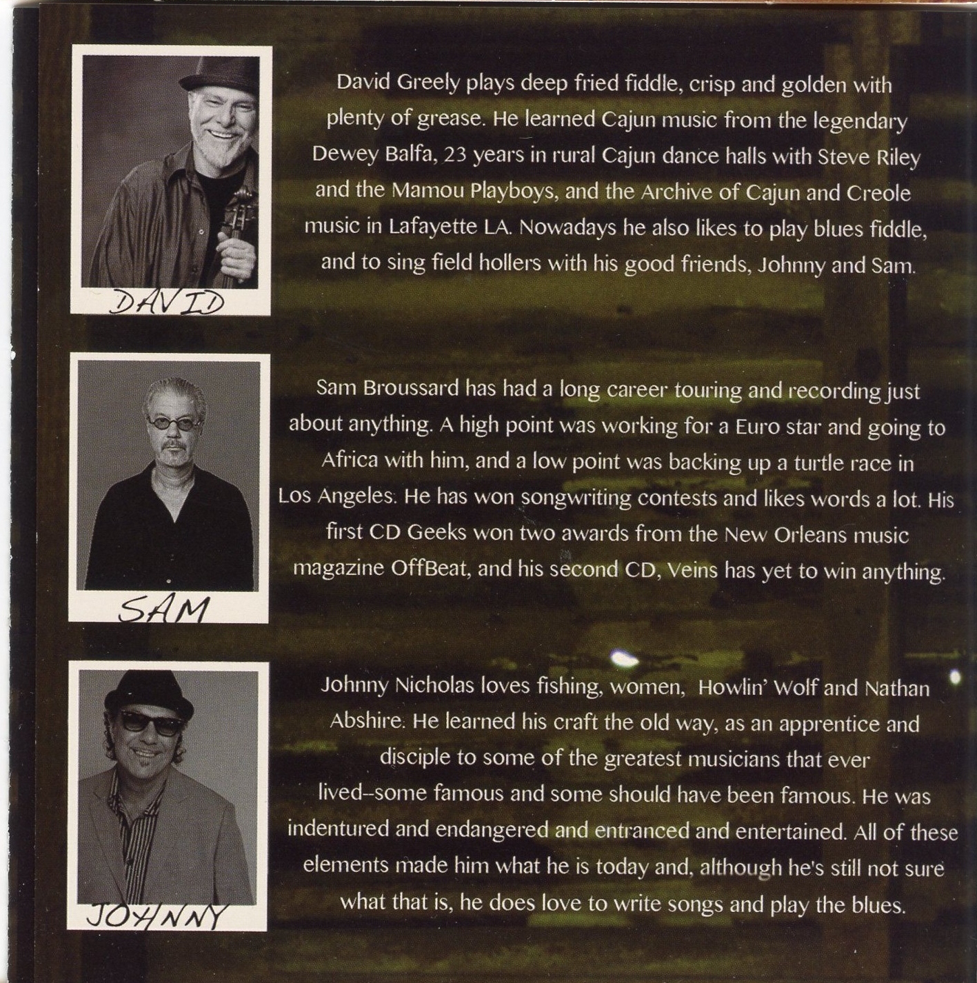 2. I was lucky enough to have a lesson with David Greely a few years back. A sweet man, he has given up fiddling in bands due to protecting his hearing. He’s an expert on the history of cajun music and he’s SO GOOD on these songs!