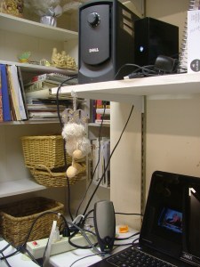 Most of the weekend was spent cleaning my office, a small room that serves as office, sewing room, music room, library and lots of other things. I took some “before” pictures, not for the blog but to embarrass myself.
