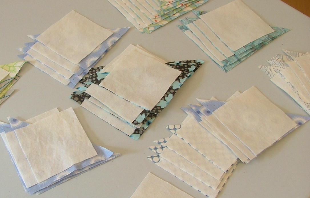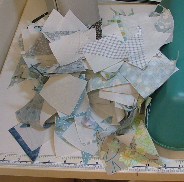 We had a wind and rain storm last night and many Rhode Islanders are out of power. So far we’re fine, which means I’ll be sewing another pile of these triangles this morning!