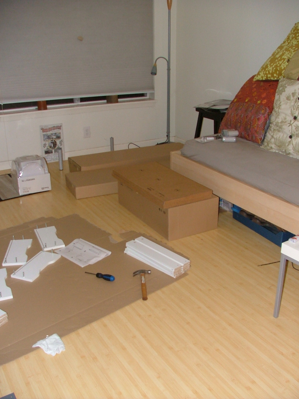 Meanwhile, Son #2 and I were assembling Ikea bookcases (him) and expounding on the benefits of getting rid of clutter and unnecessary collections of weird things (me). Believe it or not, I can dispense opinions and wisdom while also cooking chicken, pork roast, macaroni and cheese and brownies (Son #1, Sweet D-i-l and Most Handsome Grandson were coming for dinner).