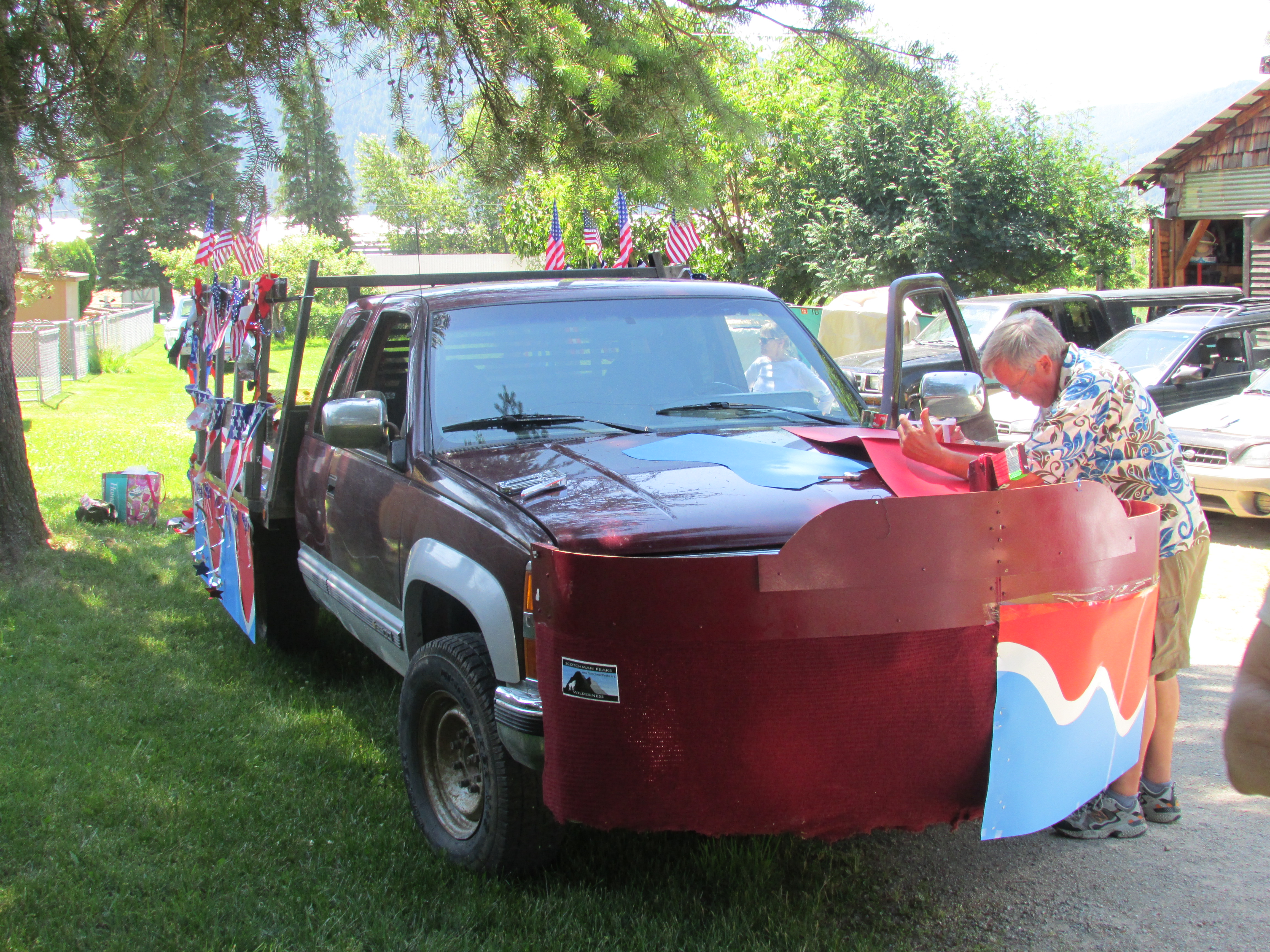 On to a better experience, decorating the 4th of July parade float.