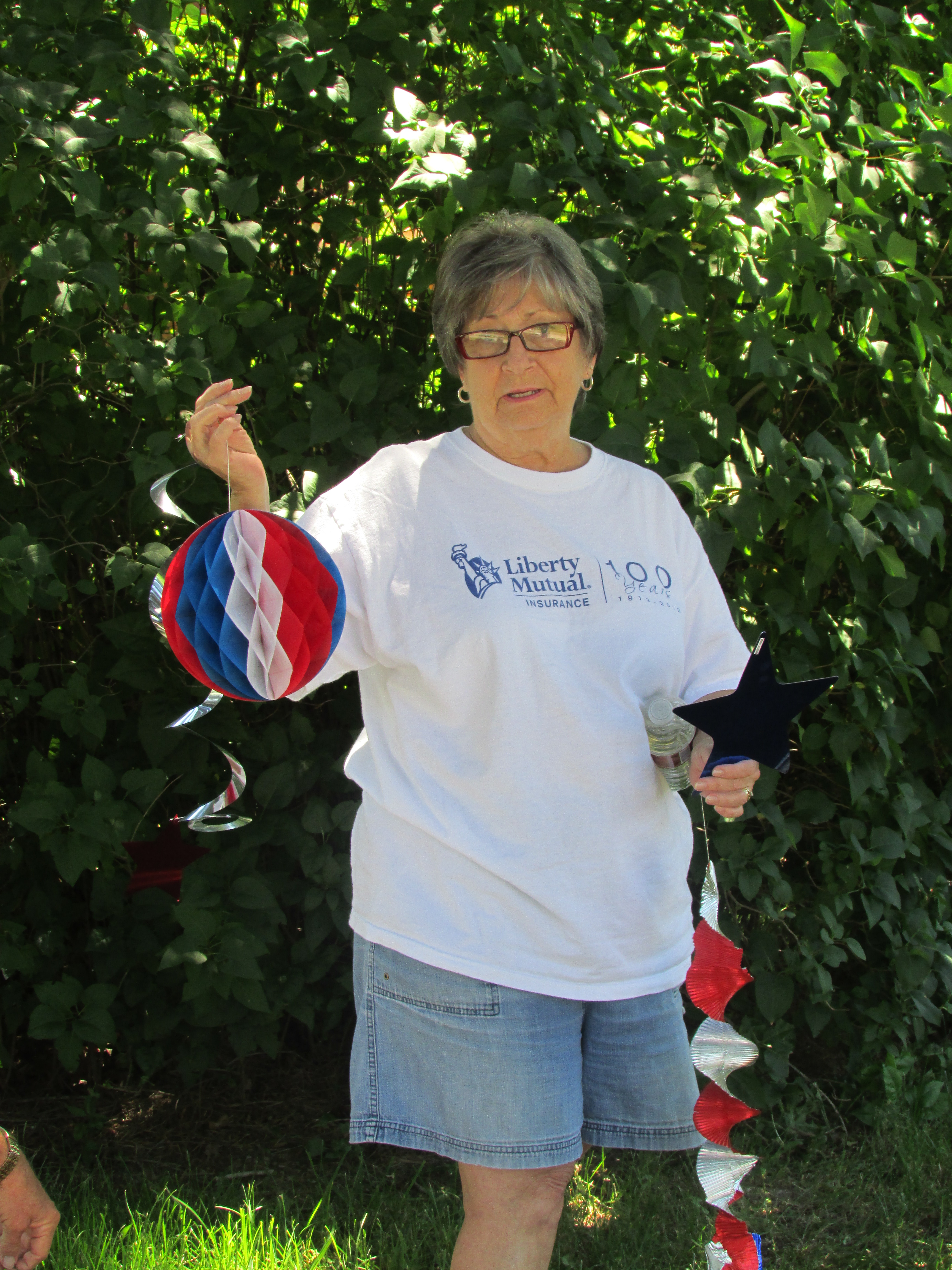 This woman has incredible decorating skills. She came all the way from Oklahoma to hold the balls. (And why does she only have one leg? Did my awesome photography skills do a magic trick? How the heck did that happen?)