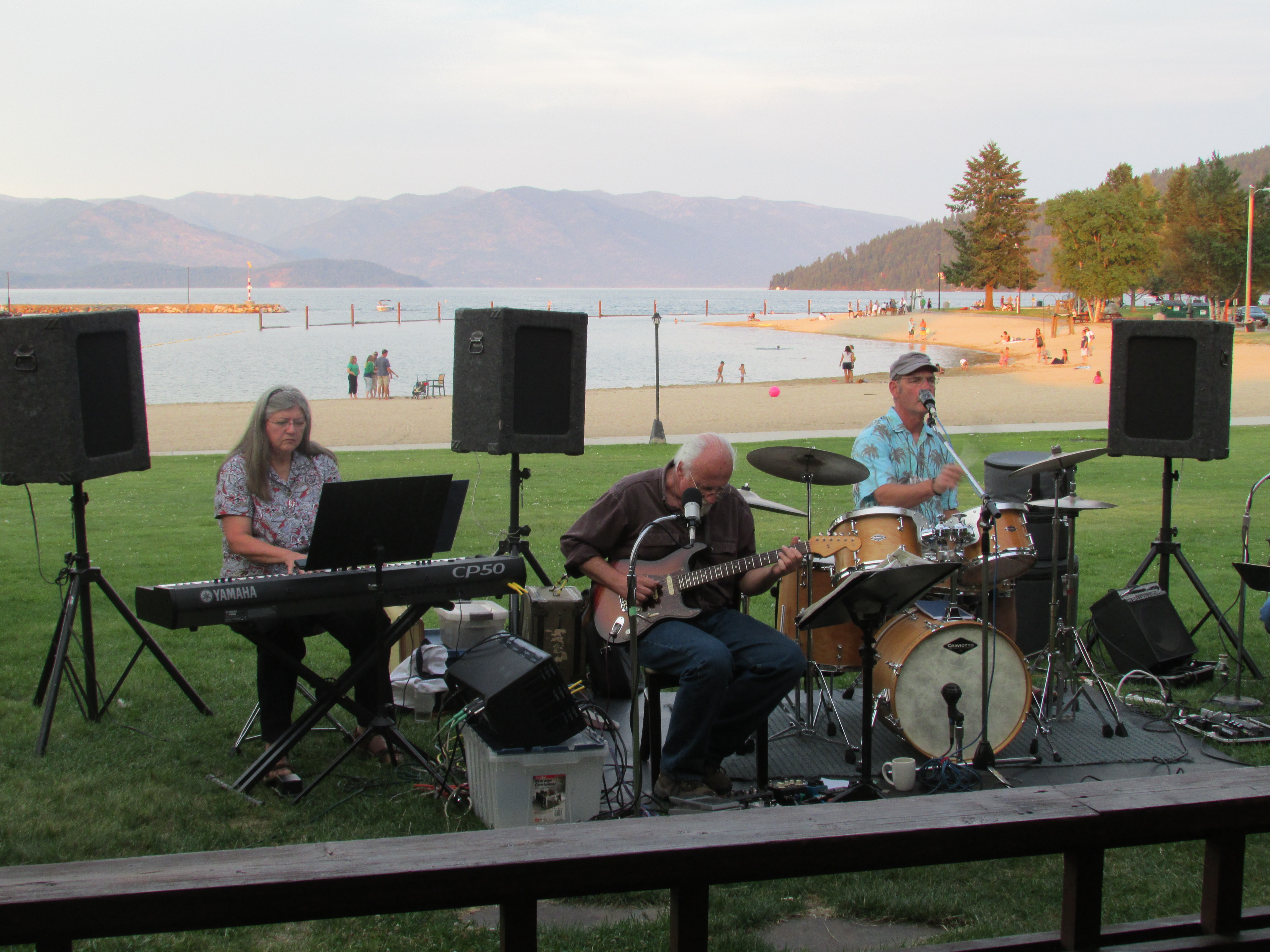Friday night at Trinity.  On the lake.  In Sandpoint.  Here’s the view from the outdoor deck.