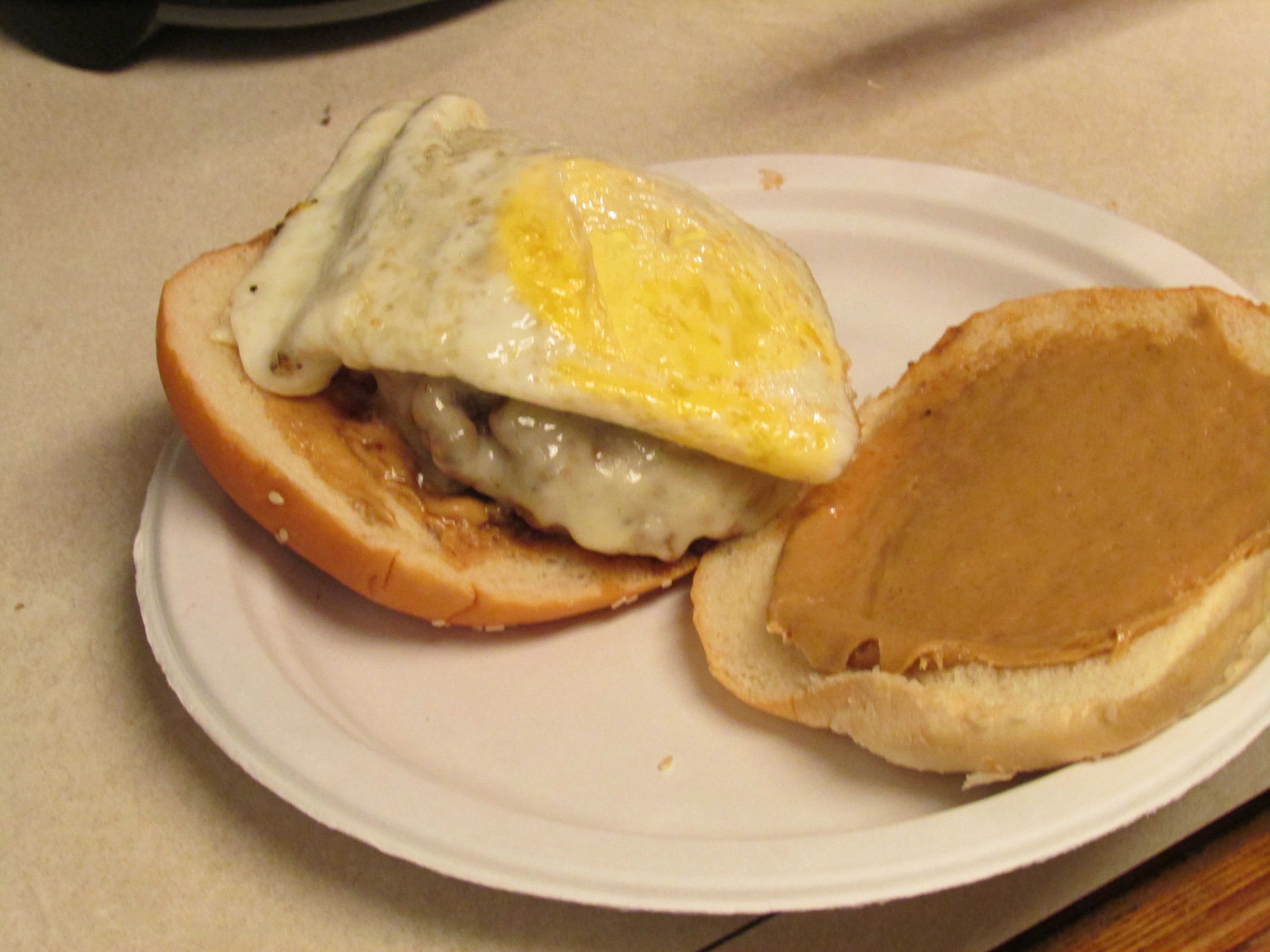 - Peanut butter, fried egg cheeseburger = birthday happiness.