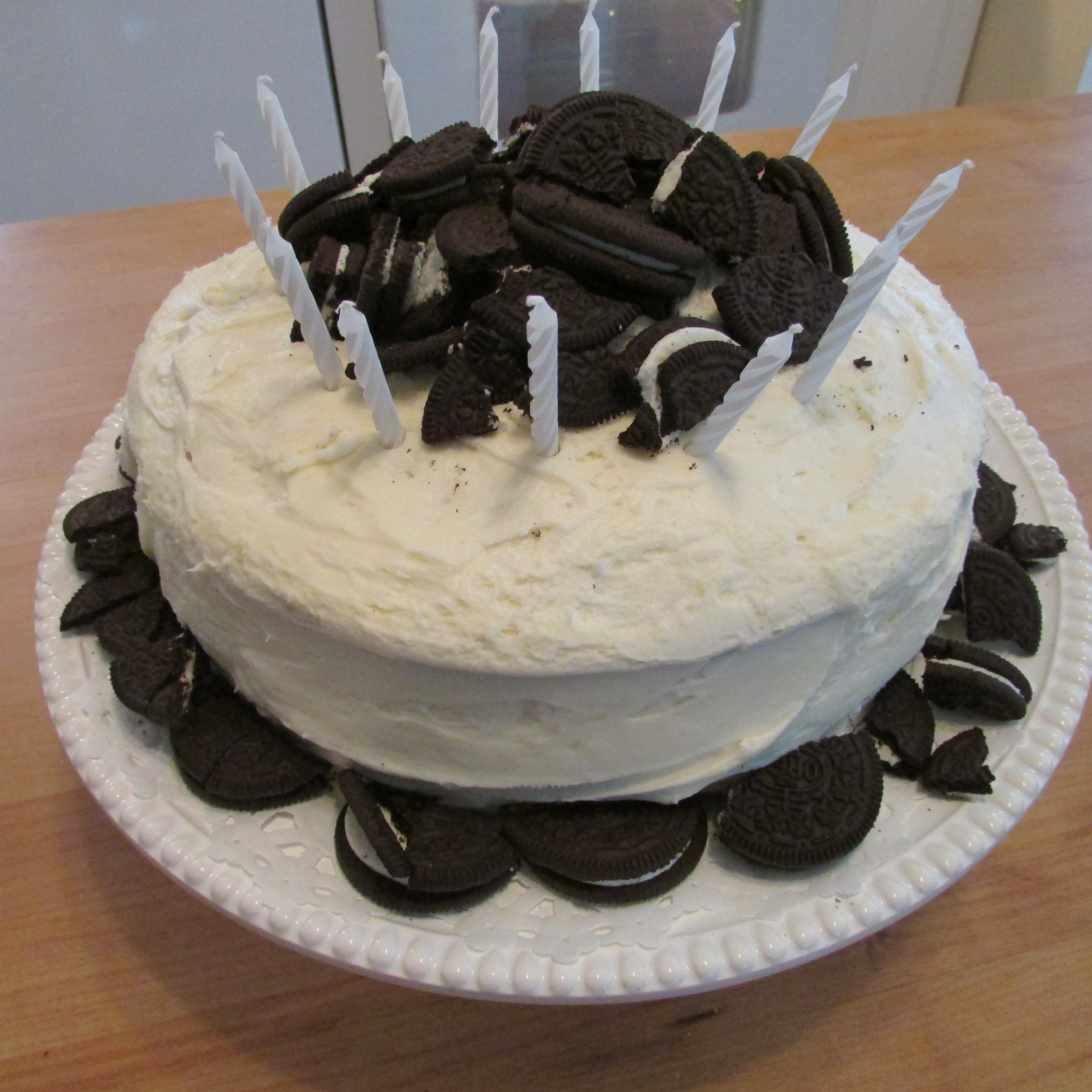 I saw it on Pinterest and it looked so good I had to try. I have zero cake decorating skills, but I could break up Oreos and pile them in the middle of a cake!