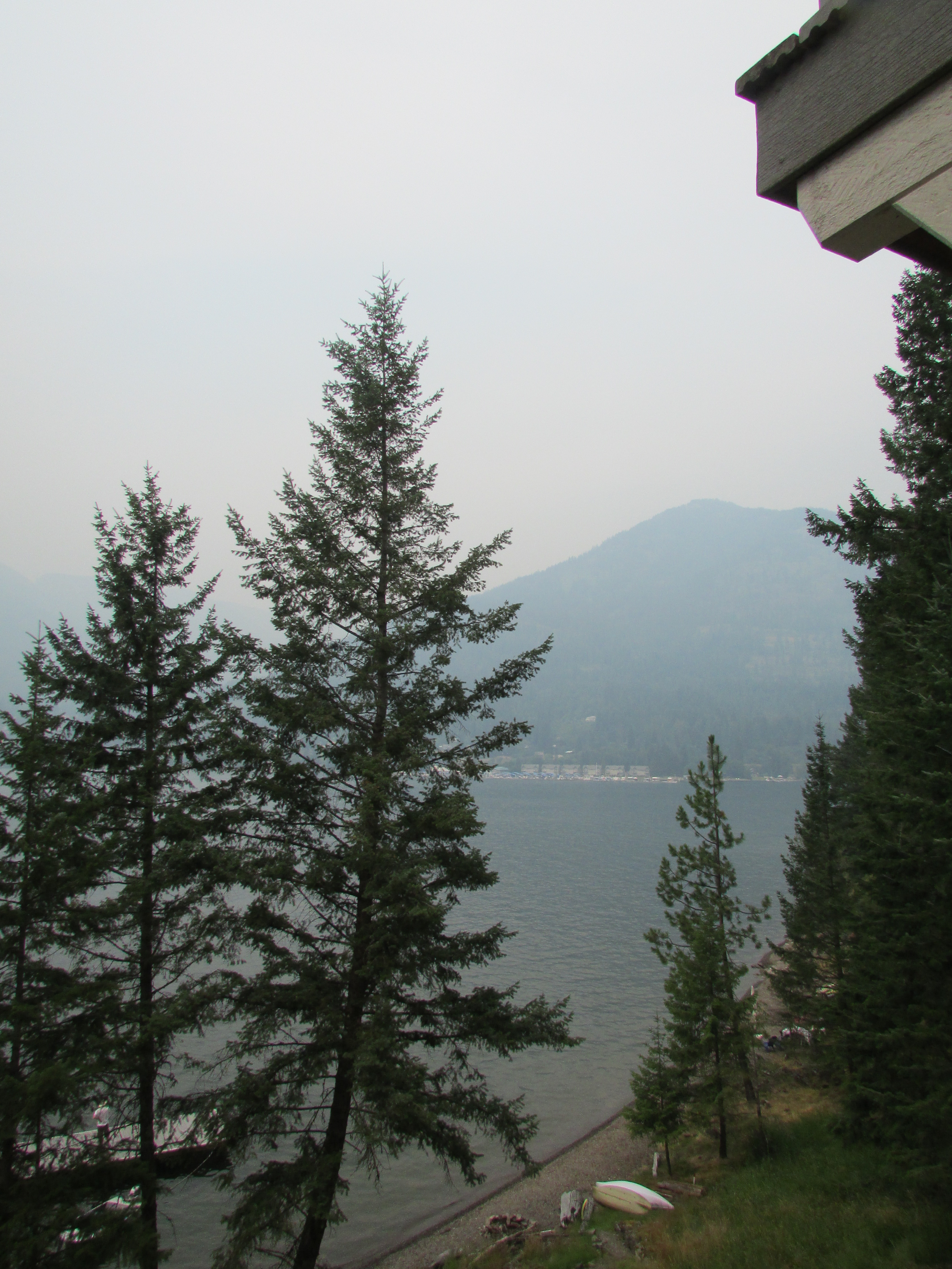 Wow. Those fires are awful. Does the smoke smell like fire? Is keeping the windows shut a problem? I doubt you need a/c near the lake. Take care.