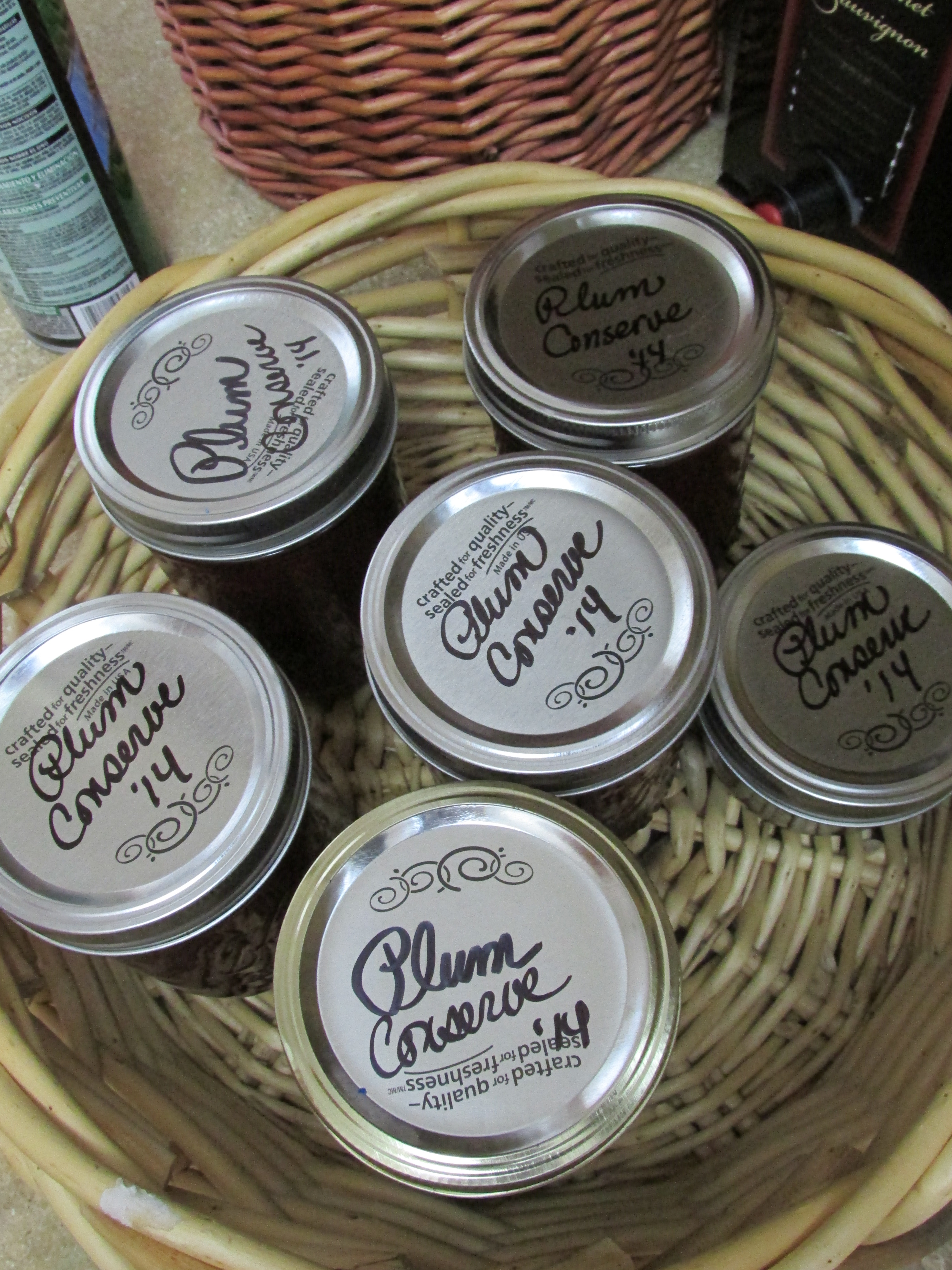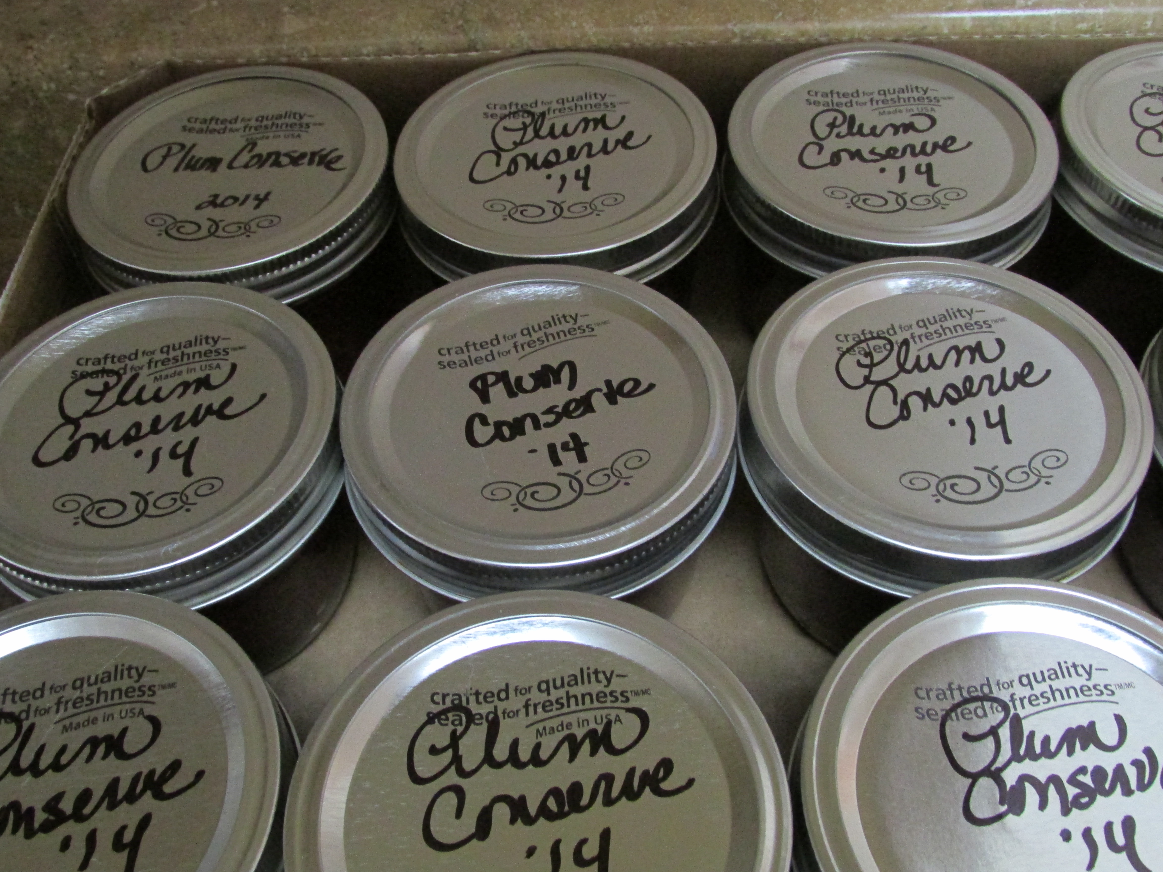 More jars of plum conserve, which involved preparing the plums in two ways (macerating and drying) and cooking with kirsch (aka cherry liqueur) and walnuts. To be served with cheese and crackers….