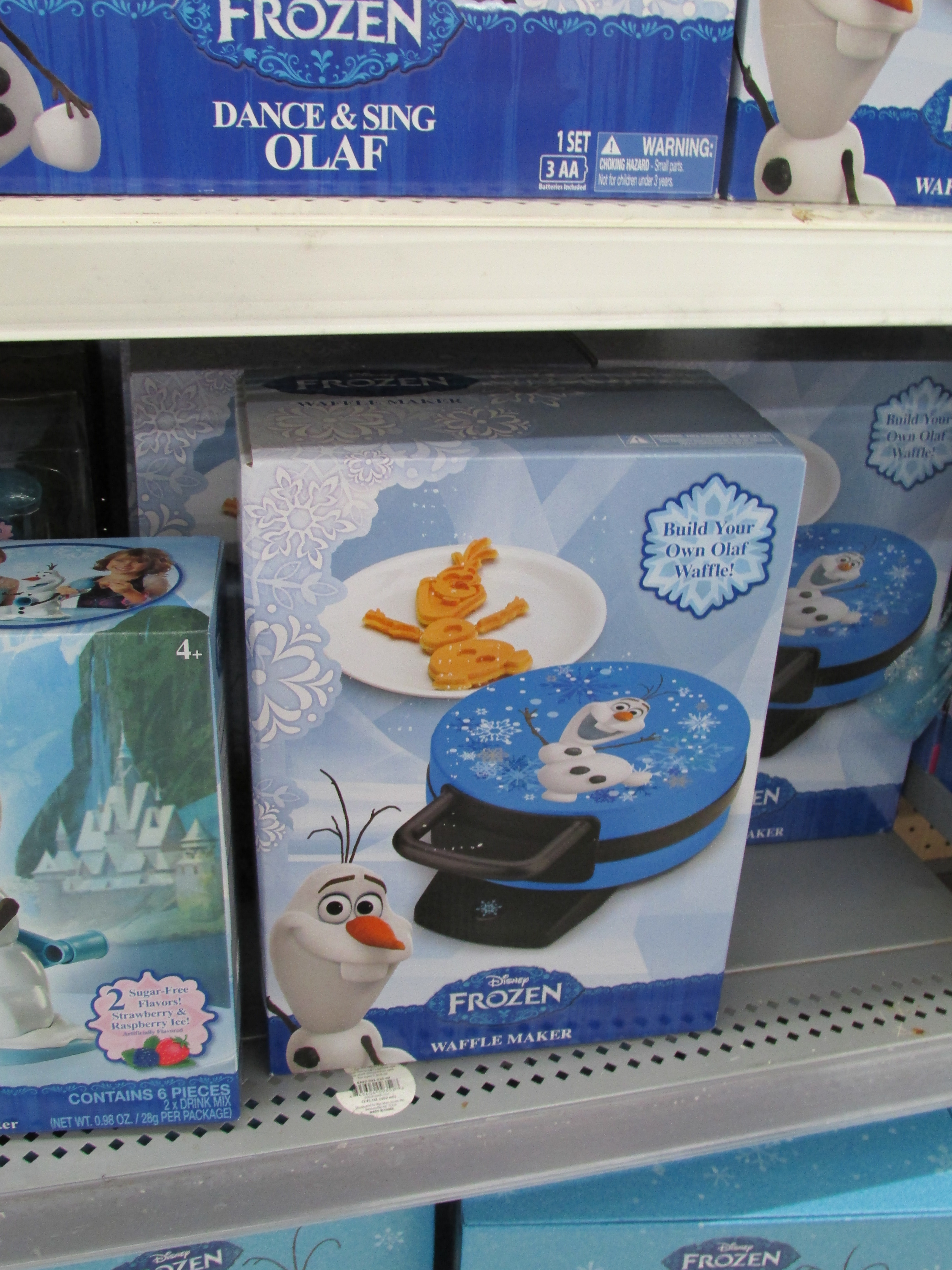 No one paid any attention to me when I whipped my camera out of my purse and photographed the Frozen toys.  There was a microphone that played The Song, so you could sing along.  I thought that was cute.  There were books and stickers and towels and bedspreads and dolls and bubble blowers.