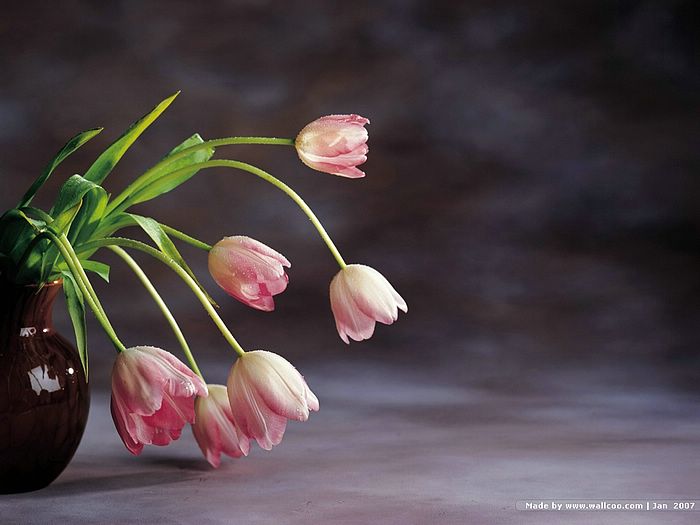 To celebrate warmer weather (which will happen sometime in April) I bought myself a bouquet of pink tulips. The poor things are struggling to live and are a bit pathetic looking, but hey, they make me happy.