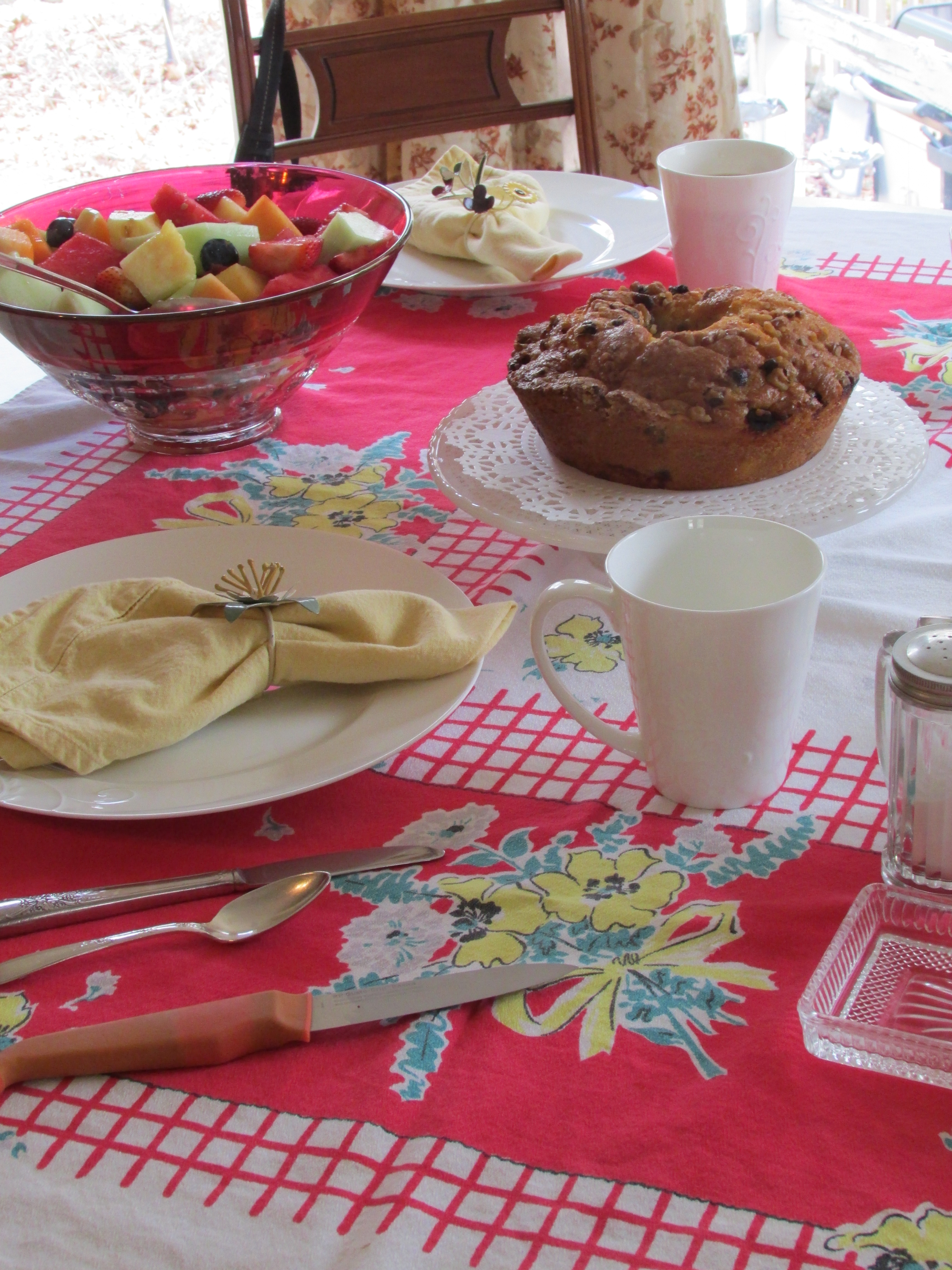 They are very shy and didn’t want their pictures taken, but they insisted on a photo of the table featuring one of my 97 vintage tablecloths.