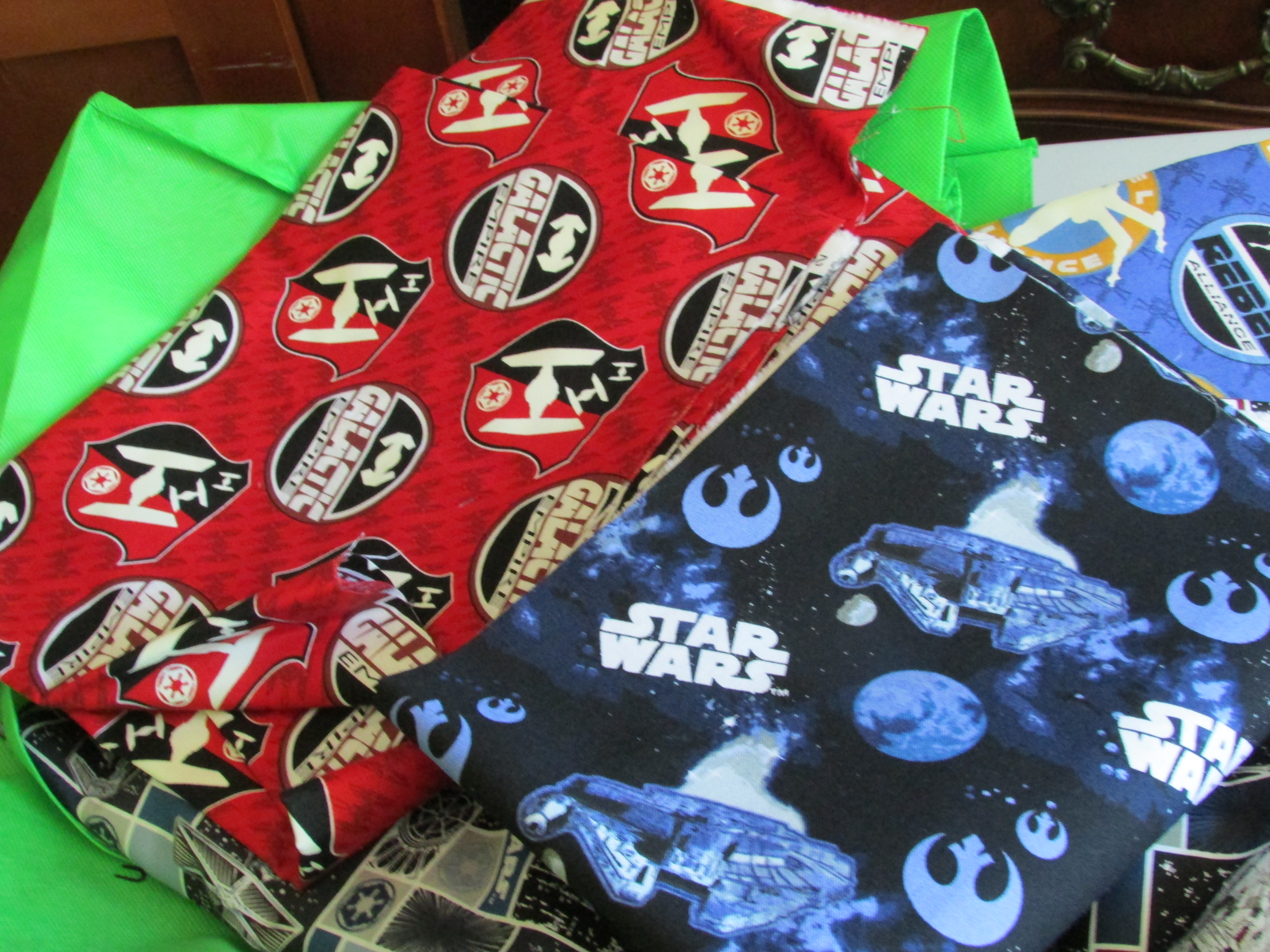 I bought Star Wars fabric.  Lots and lots of it.  Because I’m sure my grandson will need another  Star Wars quilt.  Some of this even glows in the dark!