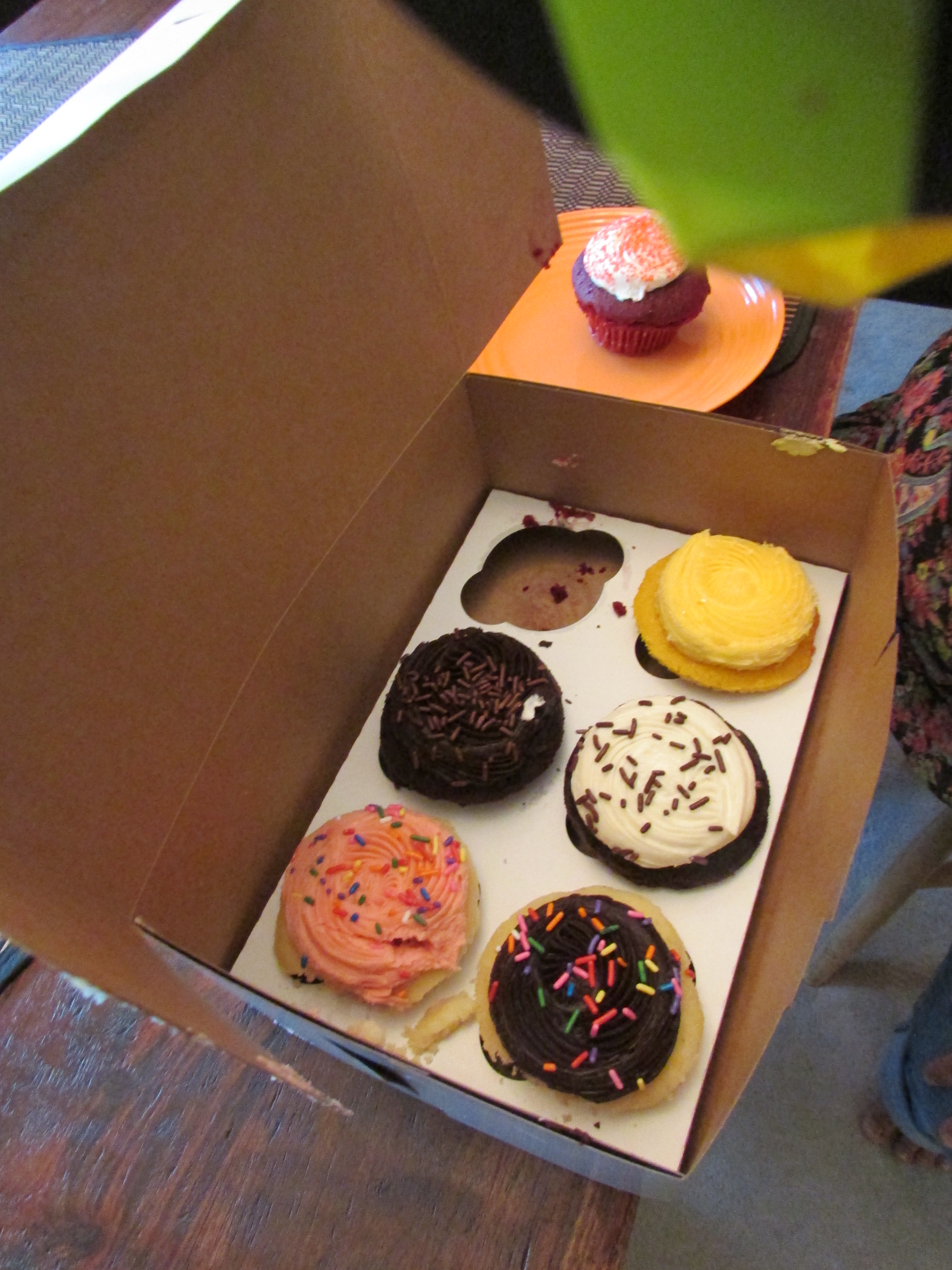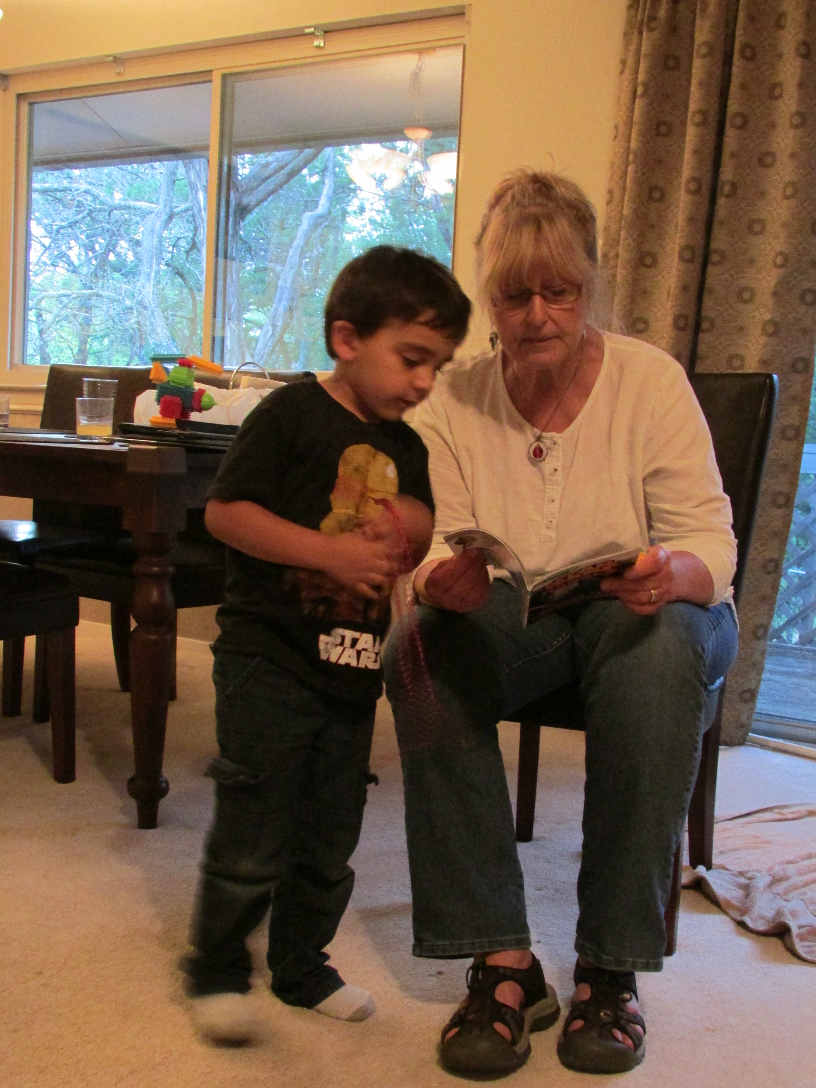 Then we headed up to Son #1’s house in Round Rock. Amber and my adorably chatty grandson were happy to see us, as was the dog. Amber made guacomole and a delicious Mexican beef stew. We brought bristle blocks and raspberry jam and a box of gourmet cupcakes from the South Congress cupcake trailer.