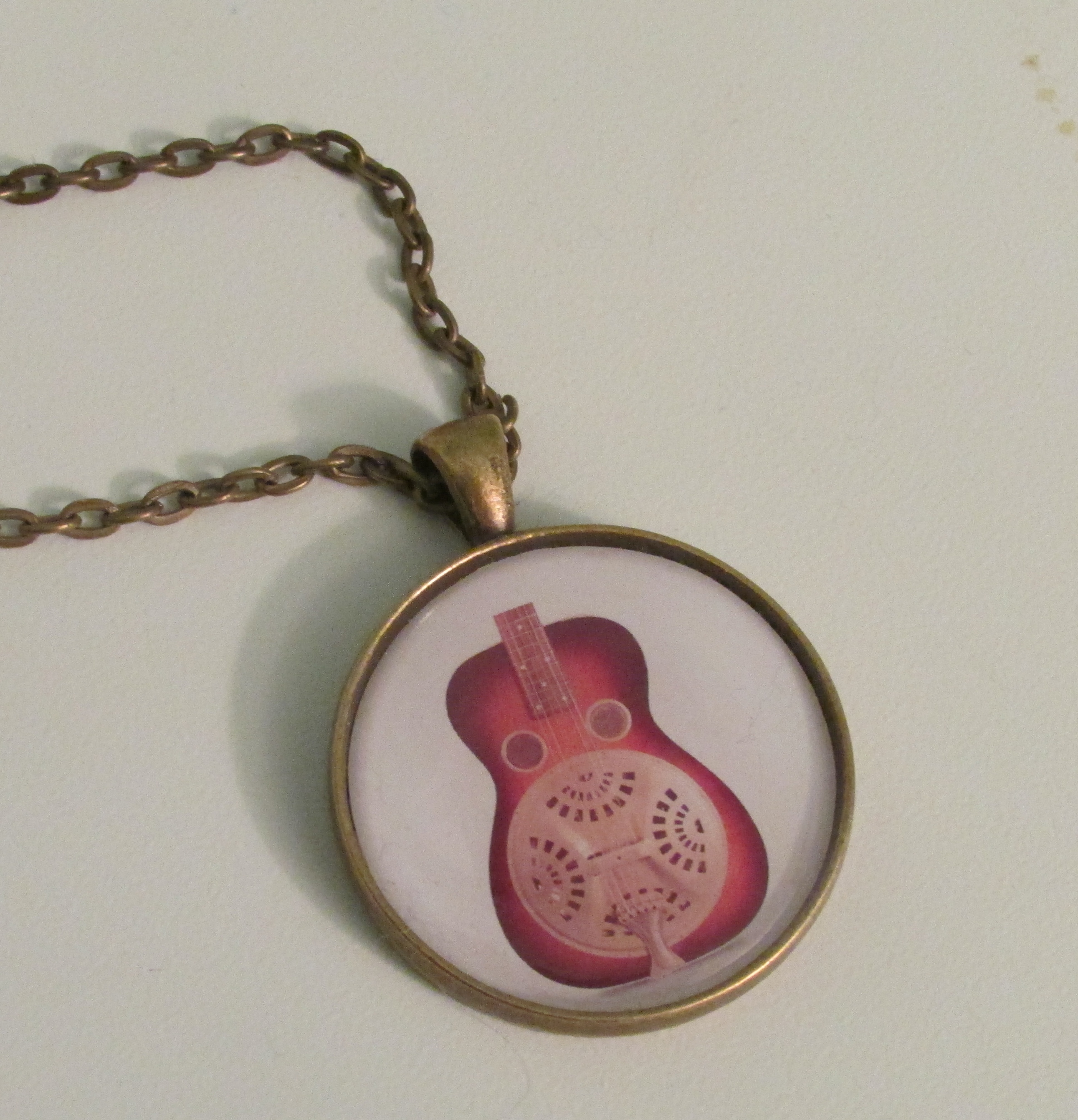 2015-05-21 005My daughter-in-law presented DMP and I with Mother’s Day gifts!  Here’s mine, which looks exactly like my dobro!  Dancing Mandolin Player received a necklace with a you-know-what on it.