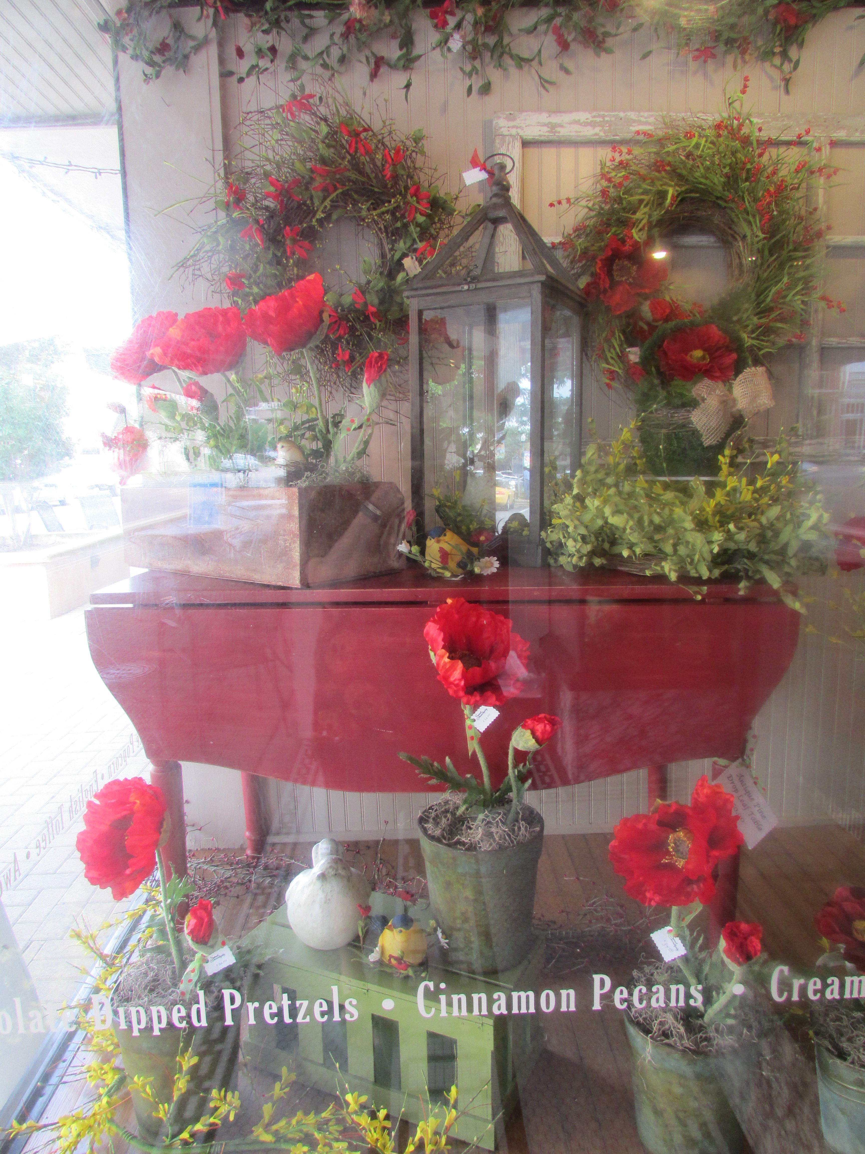 The window of the candy store.  I bought a red basket shaped like a cowboy boot.  Everyone else was jealous.
