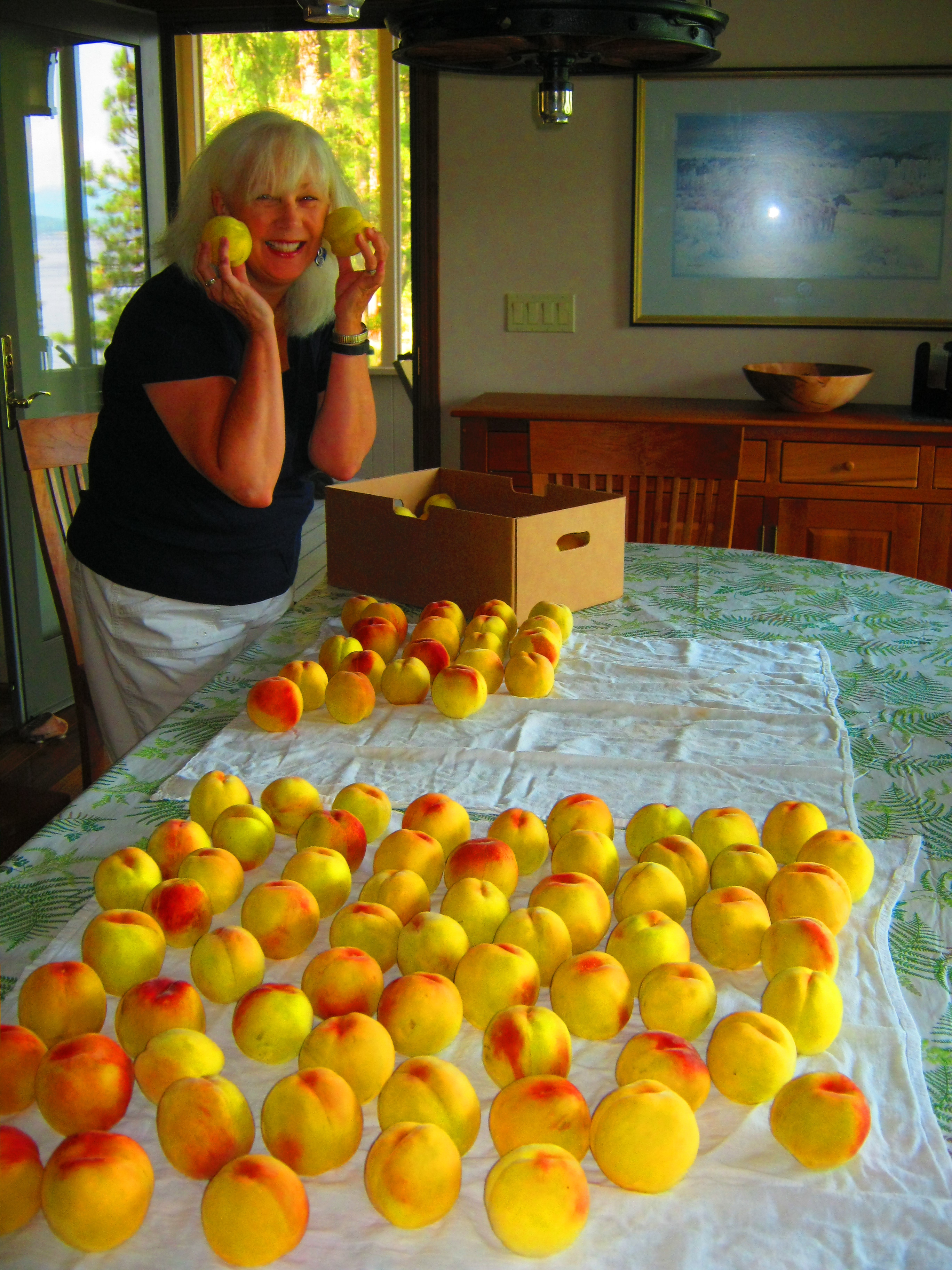 I have made a peach pie.   Due to the heat wave, the peaches have arrived early this summer.  I have been to the Peach Man three Thursdays in a row and have bought 2 cases of apricots and 4 (or was it 5??) cases of peaches.