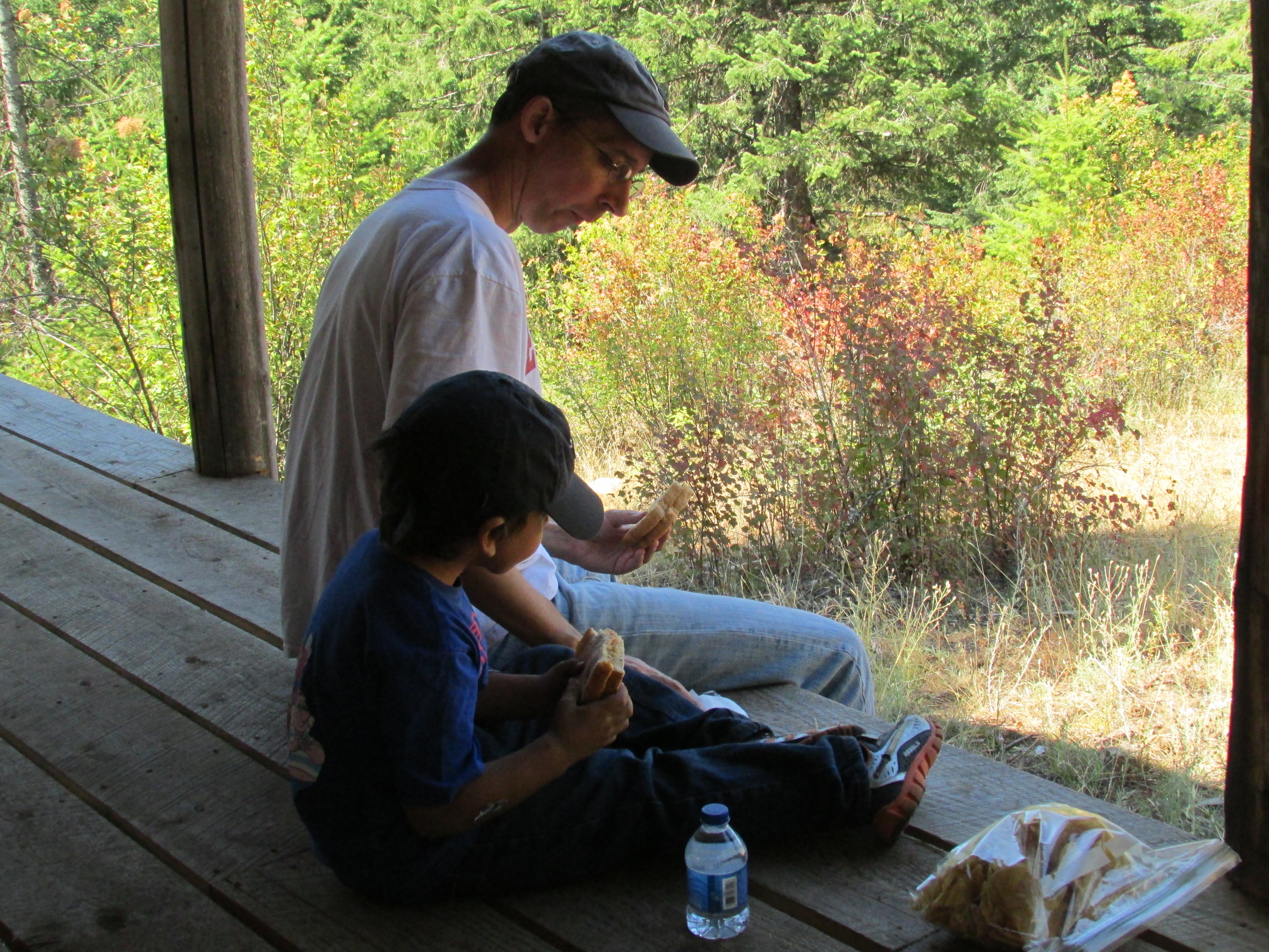 Banjo Man wanted to hike into his cabin for his birthday. So we packed a picnic lunch and, after piling into Sarge’s 4-Runner, we set off up the mountain with our son, daughter-in-law and grandson.