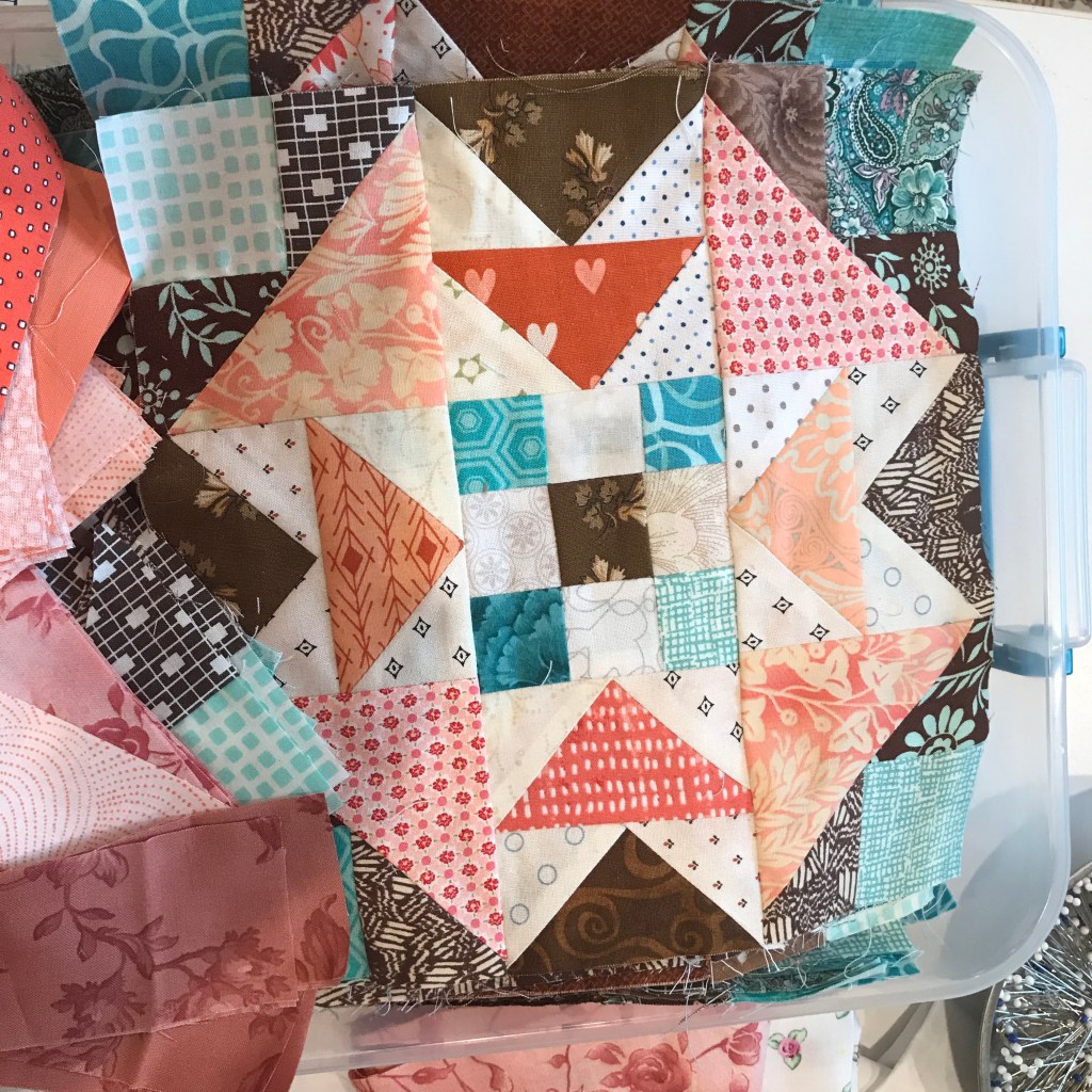 These colors are interesting. I used Bonnie Hunter’s color suggestions and that has created a cheerful quilt. I’m not an “orange” person, but I do love the browns and the neutrals. Some day someone will love it, I hope, and it will find a good home.
