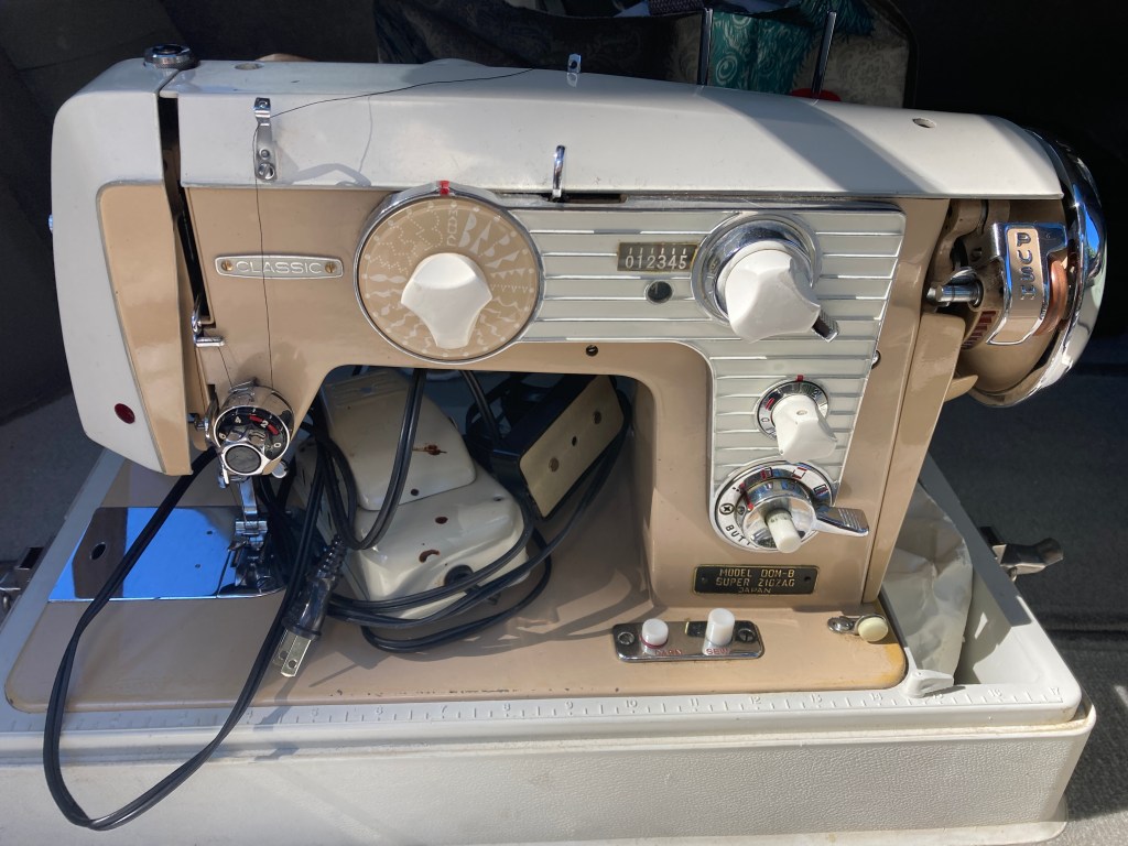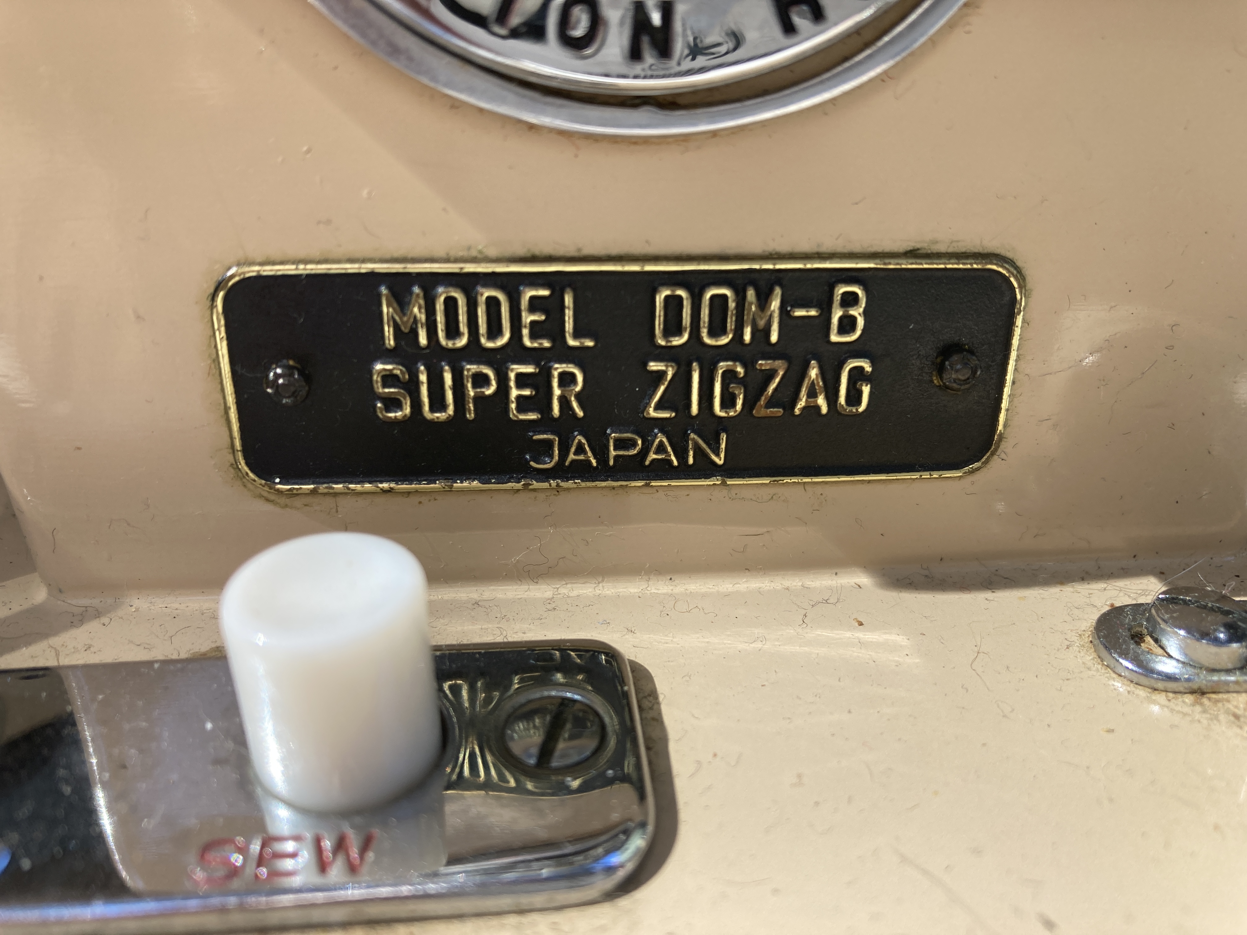 Thanks to the internet I was able to research what kind of machine this is. “Made in Japan”, it was called a “Super Zigzag” DOM-B and is pure steel. After World War II, we sent US sewing machines to Japan so they could manufacture their own versions and build their economy. Which they did, often turning out machines that were actually better than the American machines. This is one of their “badged” versions. See the “Classic” label to the left of the biggest knob? Similar labels were put on the machines as Gimbels and Ford and all sorts of companies wanted their own label.