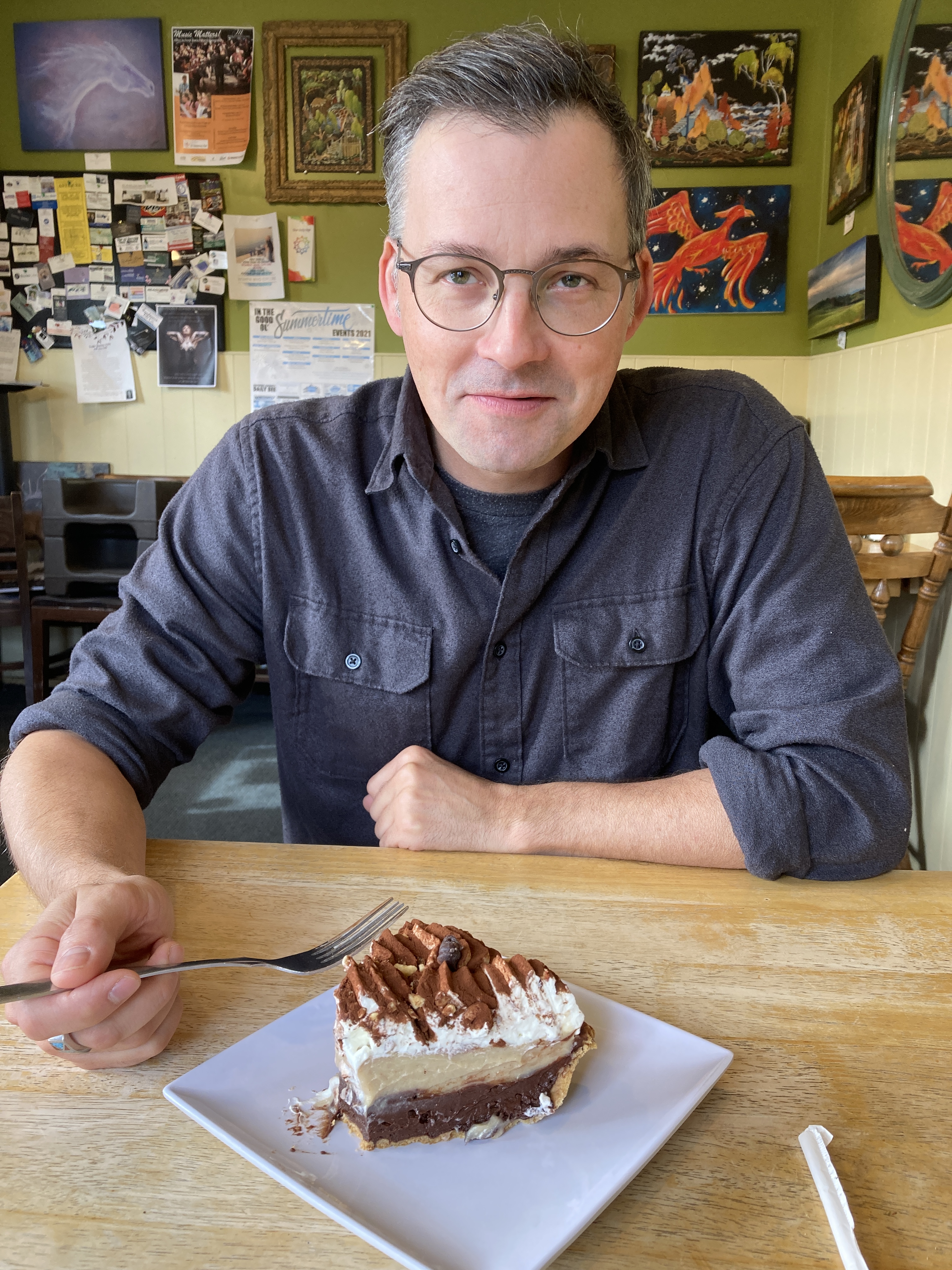 First stop: Pie Hut. They offer a soup, salad and pie combo that is irresistible. Will had the peanut butter chocolate pie and I settled for a simpler chocolate cream.